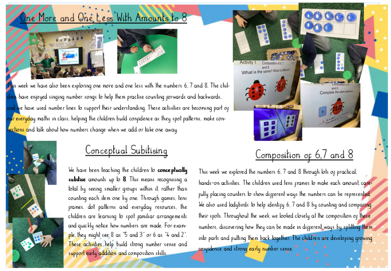 We have had a fun‑filled week packed with creativity and exploration. The children loved making blow aliens and designing their own aliens using a range of materials and resources. We enjoyed diving into our new story The Way Back Home, answering questions about the characters and setting, and thinking carefully about where we would go if we found an aeroplane. The children had great fun drawing and labelling their ideas, and later in the week they sequenced the story and acted it out with their friends.