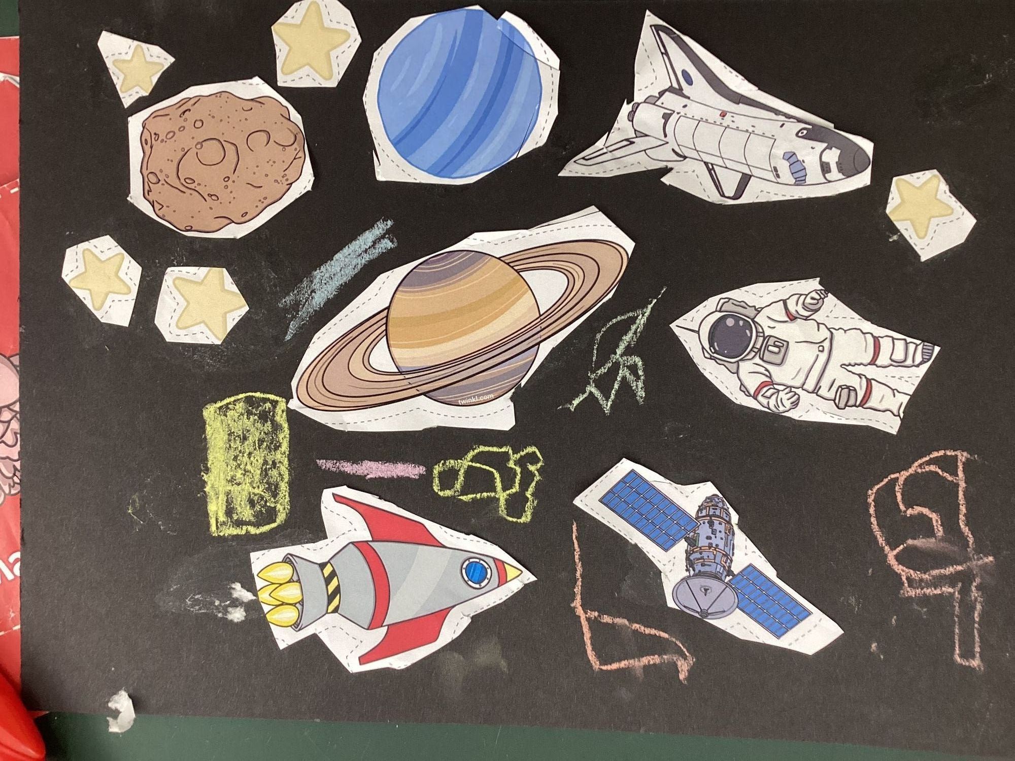 This week, the children have been learning about Mae Jemison, the first Black female astronaut, and exploring some of the stories she has written. We talked about having aspirations and the children shared their own wonderful ideas about what they hope to do when they grow up. In PE, we finished the term with calming and imaginative space‑themed cosmic yoga. During Forest School, the children played a trust game where one partner was blindfolded and guided safely across the field by a friend, helping them build confidence and teamwork. Our creative work included making foil space pictures and colourful collage art inspired by space. A highlight of the week was our Space Launch workshop with parents, where the children proudly shared their learning and had lots of fun—photos will follow soon.