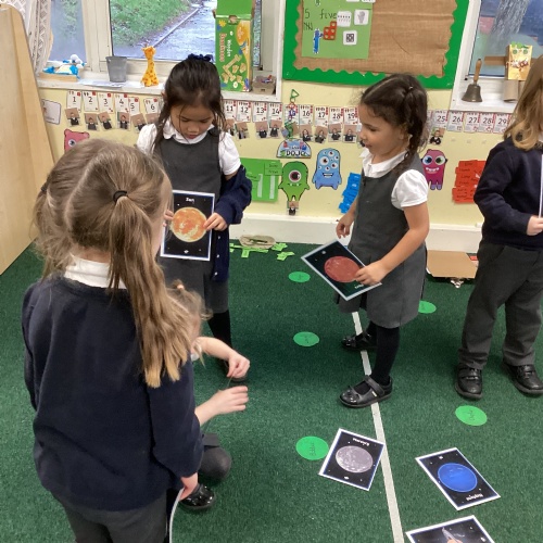 This week, the children have completed their Drawing Club work by exploring the story’s setting and creating their own exciting adventures. They packed a bag for a trip to the moon, carefully deciding what they would need and using their phonics knowledge to write labels for each item. We also learnt the planet song, had fun singing together, and practised ordering the planets in our solar system. During Play and Learn, the children pretended to be planets orbiting the sun, bringing science to life through movement and imagination. In PE, they developed their coordination by bouncing a ball and passing it to a partner. Forest School was a sensory highlight as the children made “smelly pots” and even discovered something exciting, which is now proudly displayed in Reception. As part of our topic work, the children enjoyed watching the first moon landing and learning all about Neil Armstrong, deepening their understanding of space exploration.