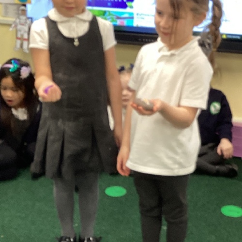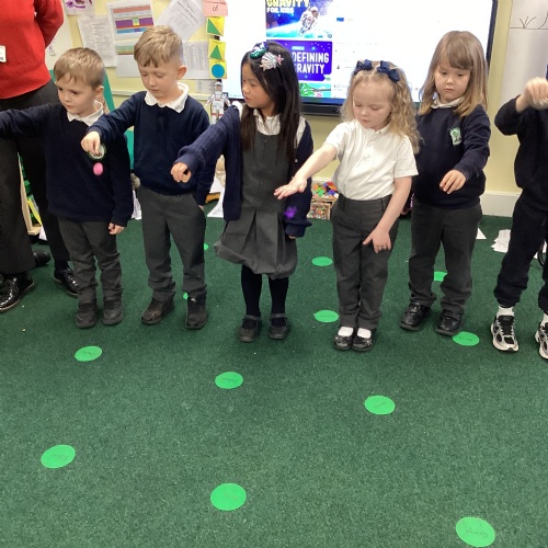 In PE, we continued developing our fundamental skills of throwing, catching and rolling, this time introducing apparatus to extend our learning. Using natural materials collected from Forest School, the children worked together to create a hedgehog house and a bird’s nest for our display. In Knowledge and Understanding of the World, we explored gravity through hands‑on experiments and watched how astronauts move on the moon before trying out our own moon‑walking. It’s been a wonderful week of imagination, teamwork and discovery.