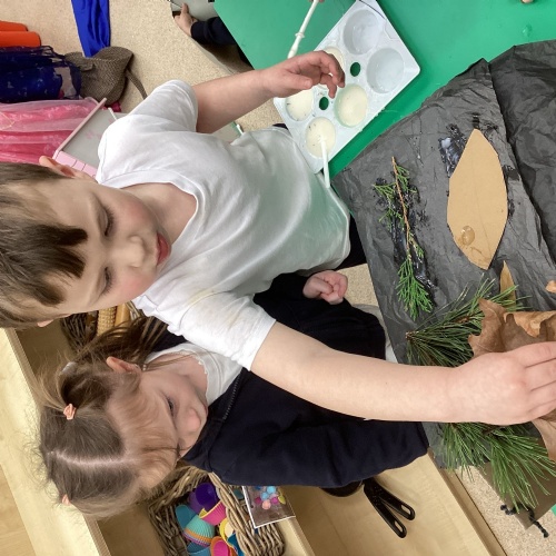 In PE, we focused on developing our fundamental movement skills, especially learning how to roll a ball with control. During Forest Fun, the children worked together to build cosy nests for birds, showing great teamwork and imagination.