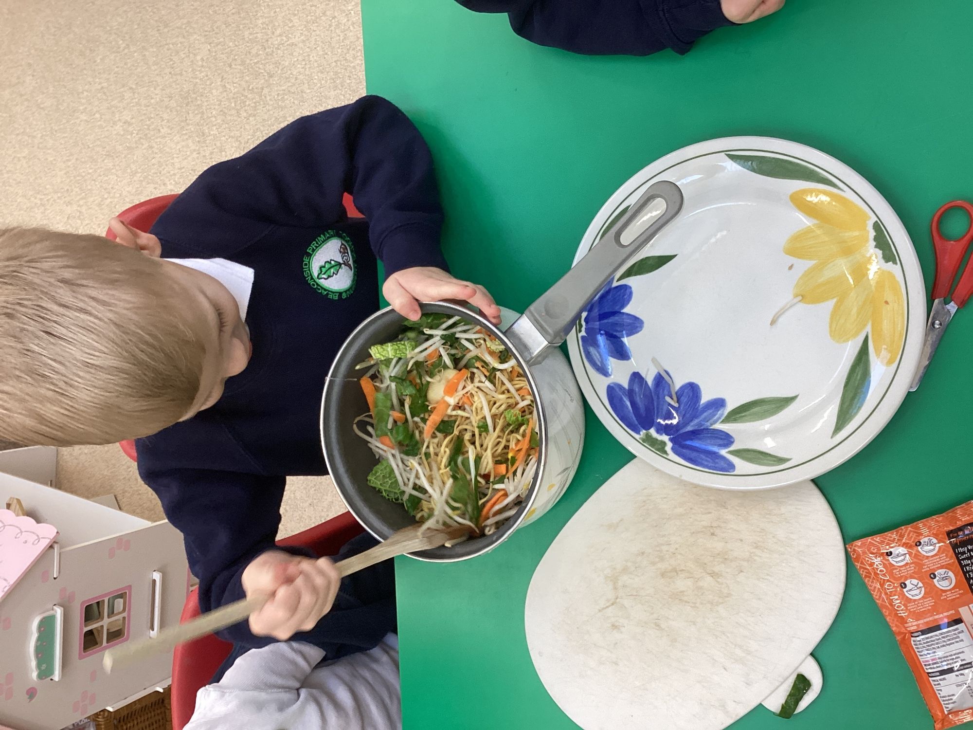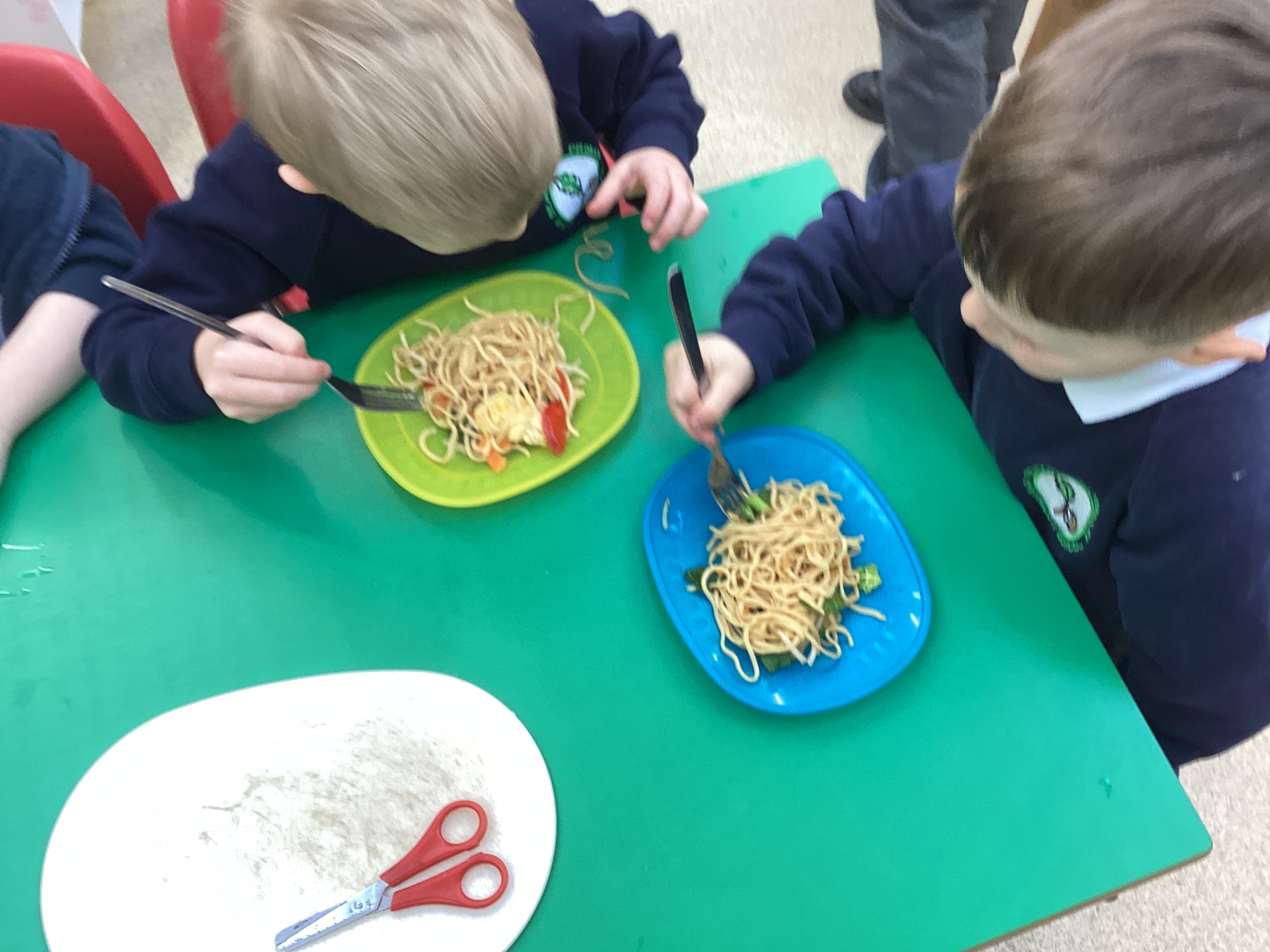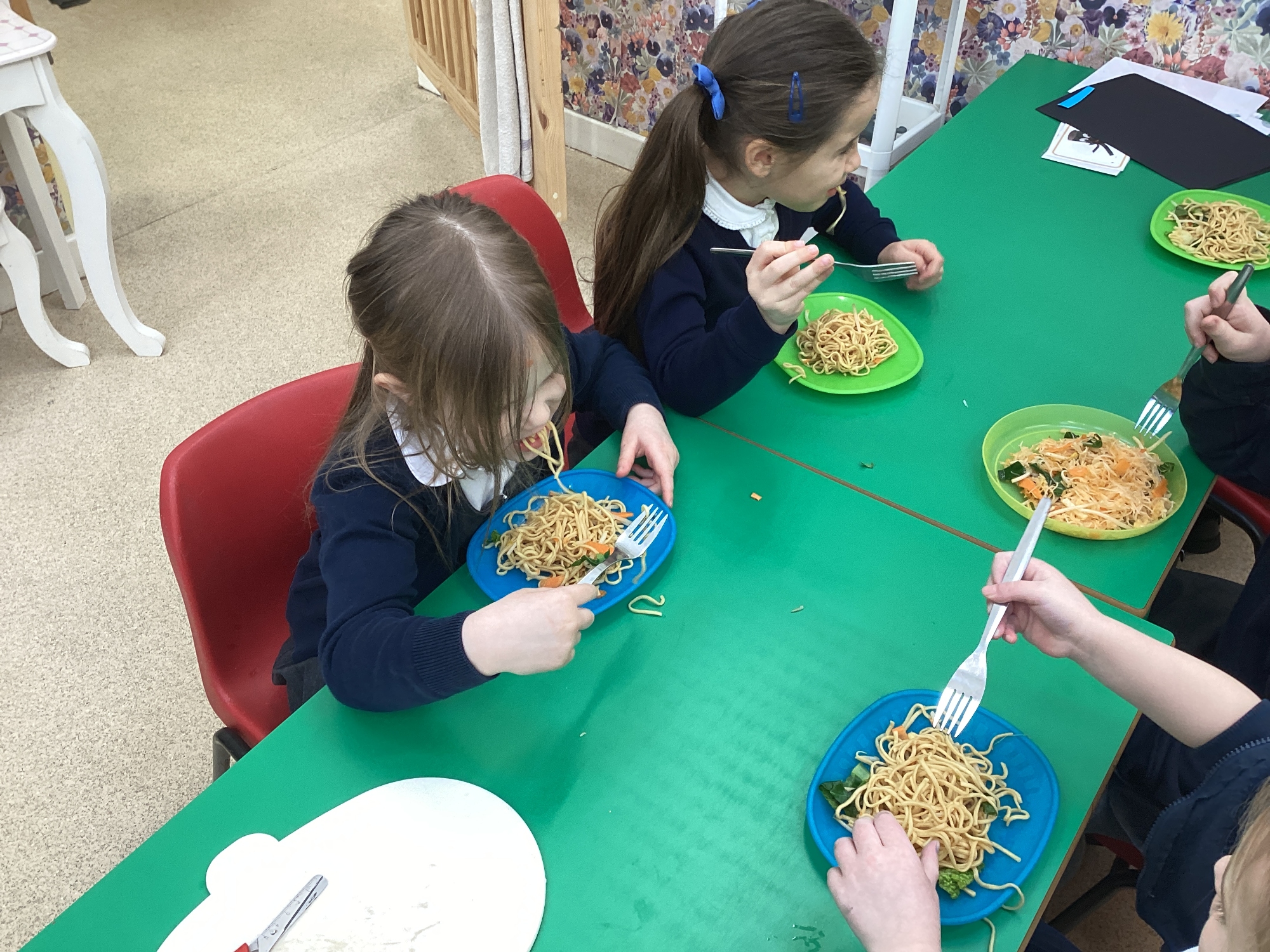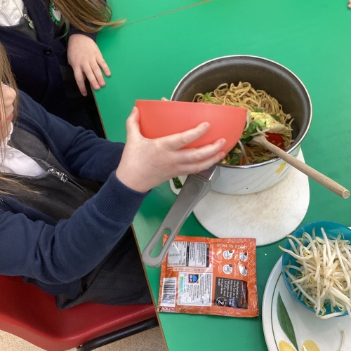 This week we have been learning all about Chinese New Year through a wide range of exciting activities. The children listened to The Great Race and enjoyed sharing their favourite parts with a partner before retelling the story using props and role‑play. They explored new vocabulary linked to celebrations and compared how people in England and China celebrate special occasions. One of the highlights of the week was tasting traditional Chinese foods such as noodles, prawn crackers and fortune cookies. The children predicted what each food might taste like, tried them, and talked about which they preferred. We also looked at pictures of other Chinese dishes and discussed how they are eaten during celebrations. The children learned to say “Happy New Year” in Chinese and used this in their play, especially in our Chinese restaurant role‑play area, complete with bowls, chopsticks, woks and red decorations. They also acted out the story using masks and a pretend river.