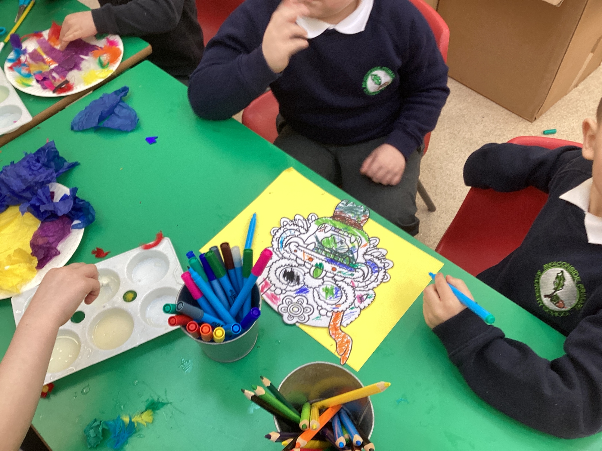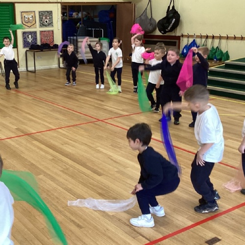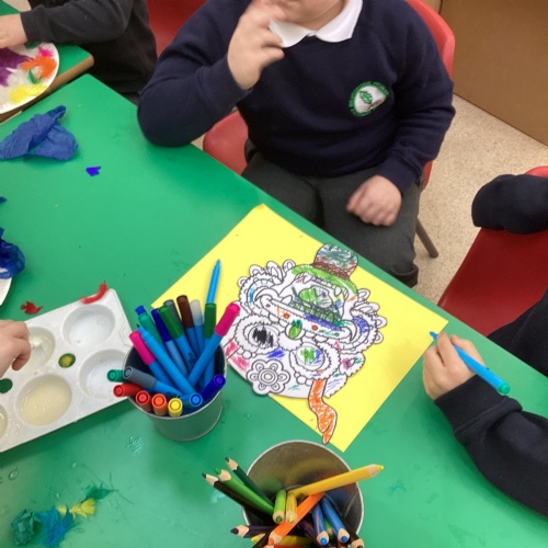 Throughout the week, the children explored Chinese writing, had a go at forming some Chinese letters and numbers, and created their own Chinese New Year cards. They worked together on collaborative art projects, including making dragons from paper plates and tissue paper, and used scissors and pencils to develop their fine‑motor skills. They also enjoyed creating dragon dances, using fabric to form long dragons and experimenting with different movements. We looked at the Chinese Zodiac, found China on a world map, and discovered which animal represents this year as well as the year they were born. It has been a vibrant and engaging week full of storytelling, creativity, cultural exploration and hands‑on learning.
