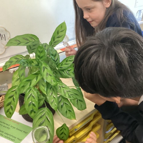 In science, we studied the adaptations of tropical plants. We closely observed and discussed the plants’ features.