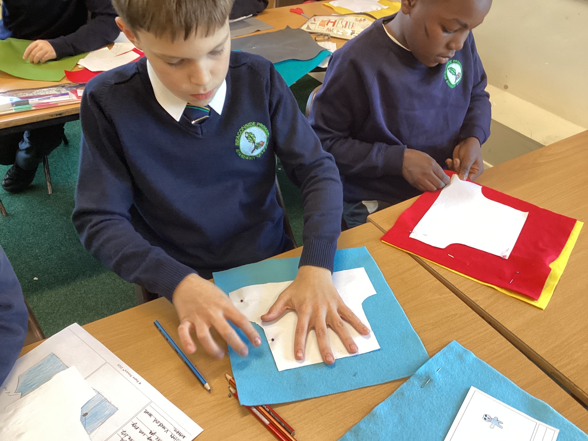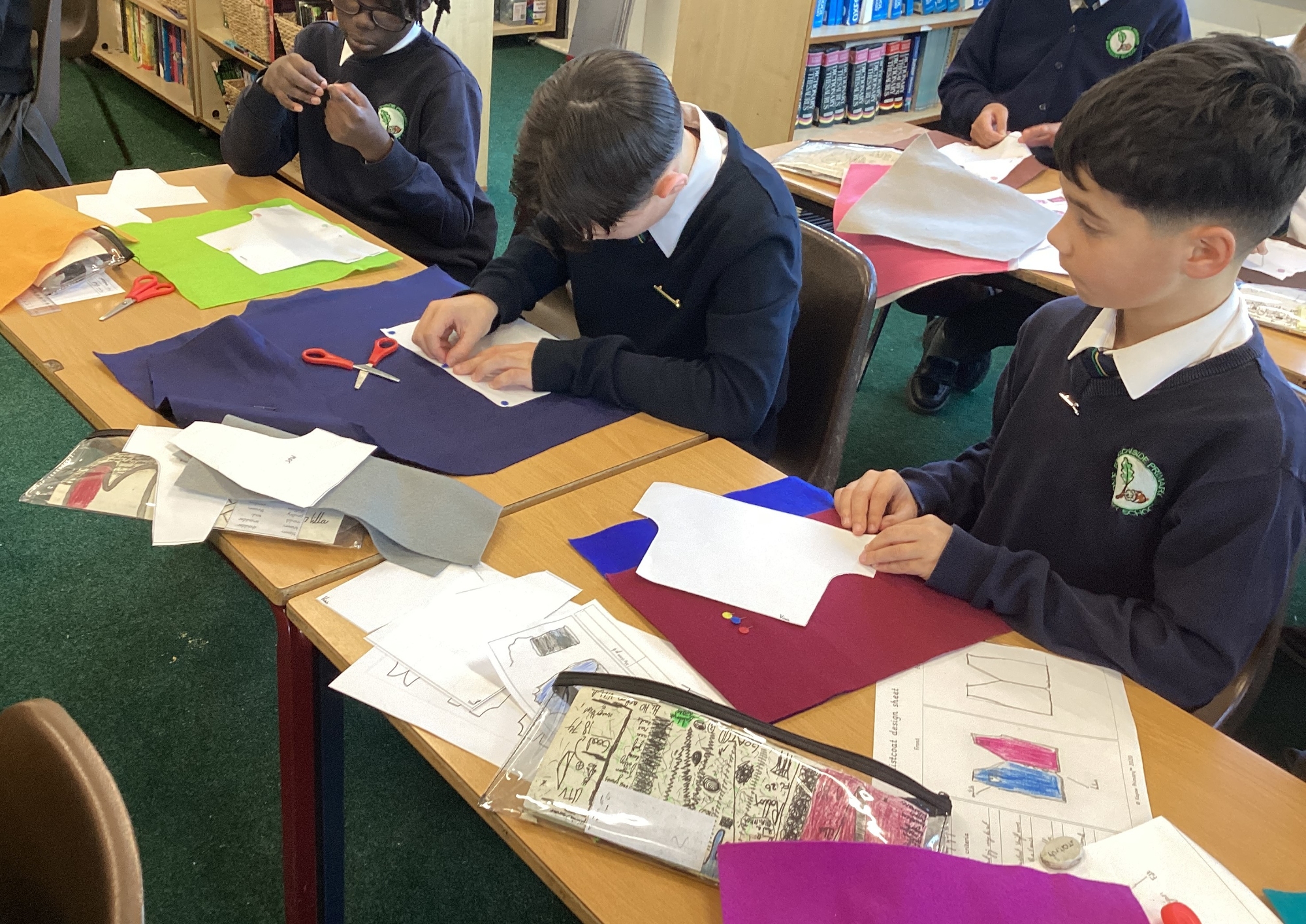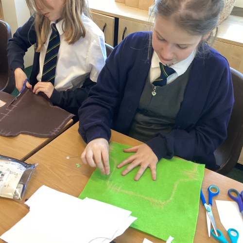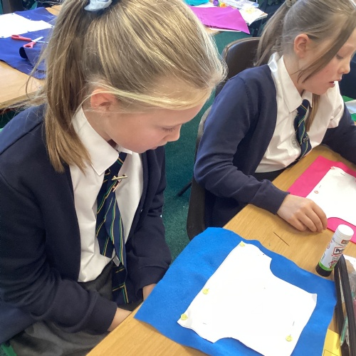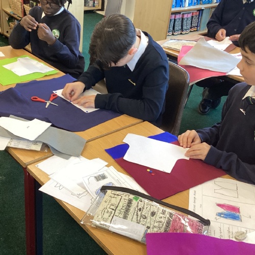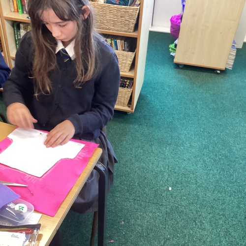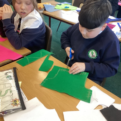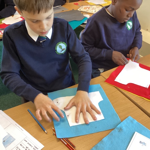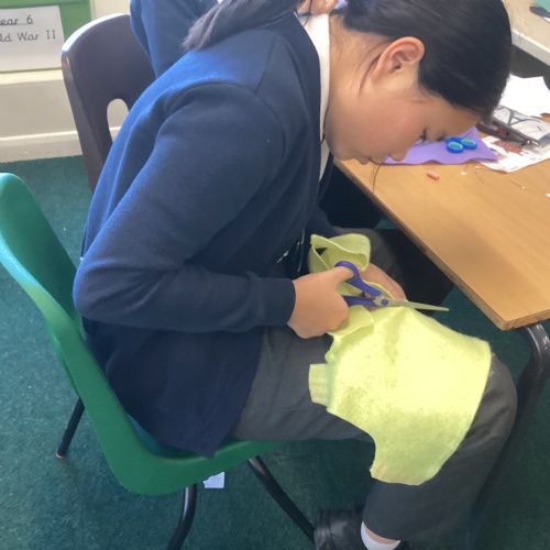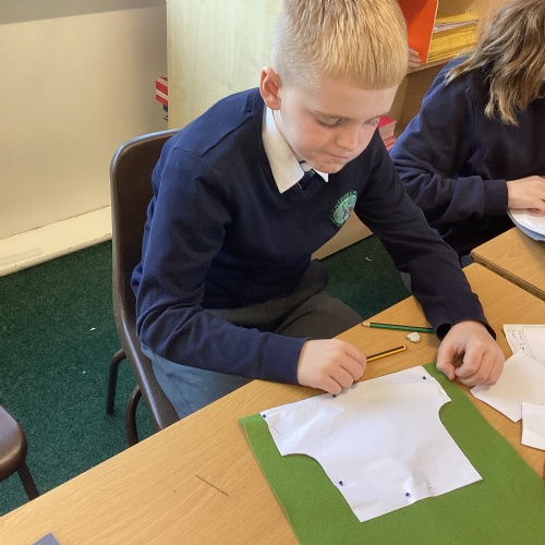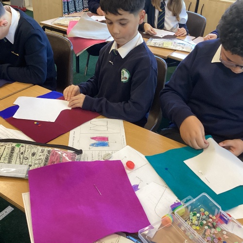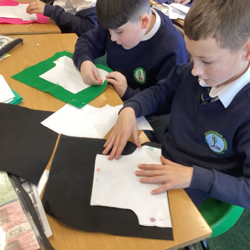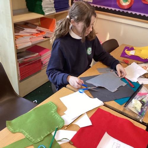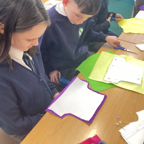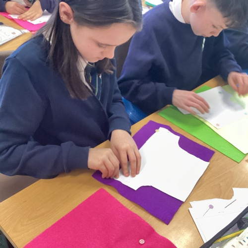 In DT, we explored the properties of different materials and used a pattern to cut shapes accurately from felt.