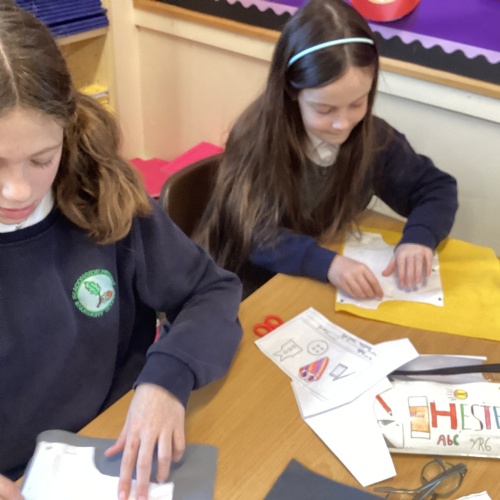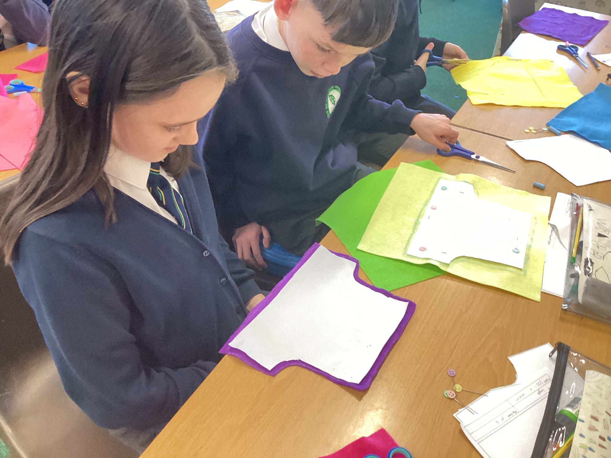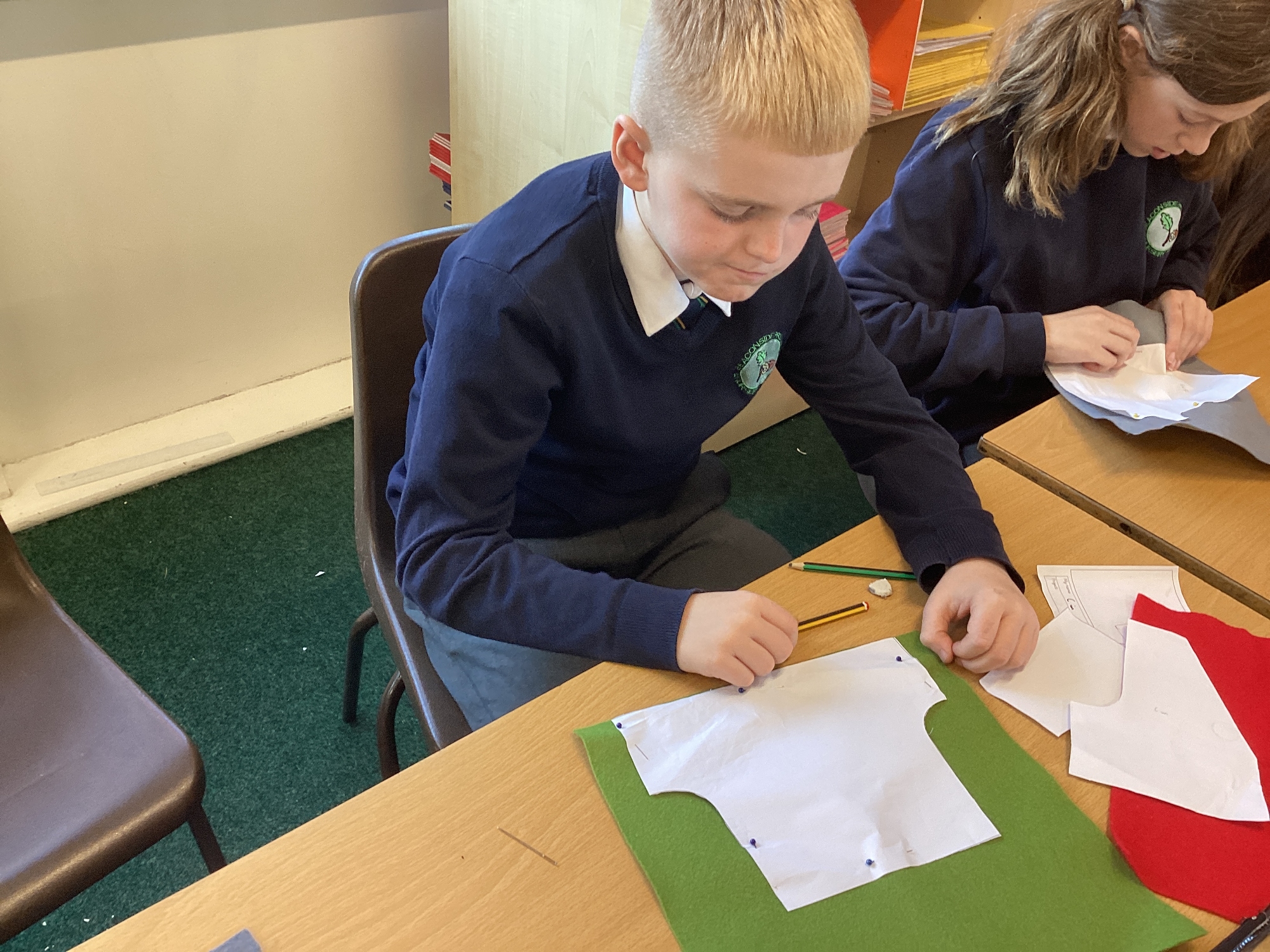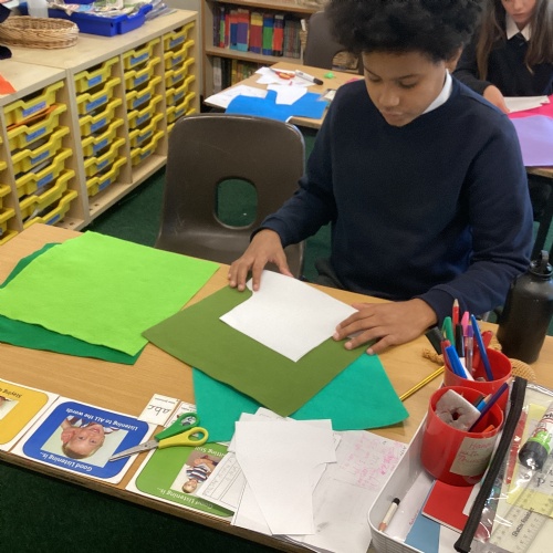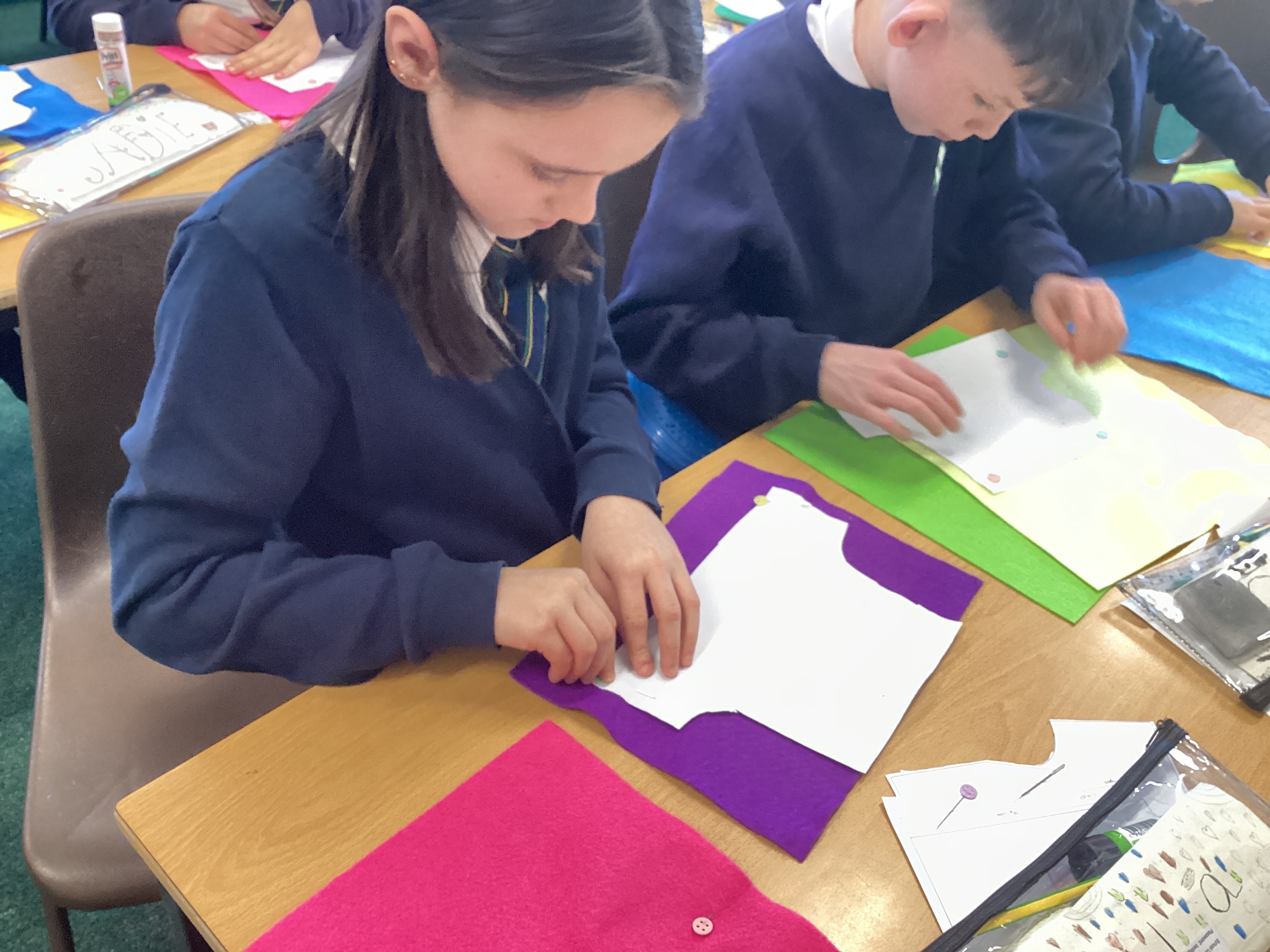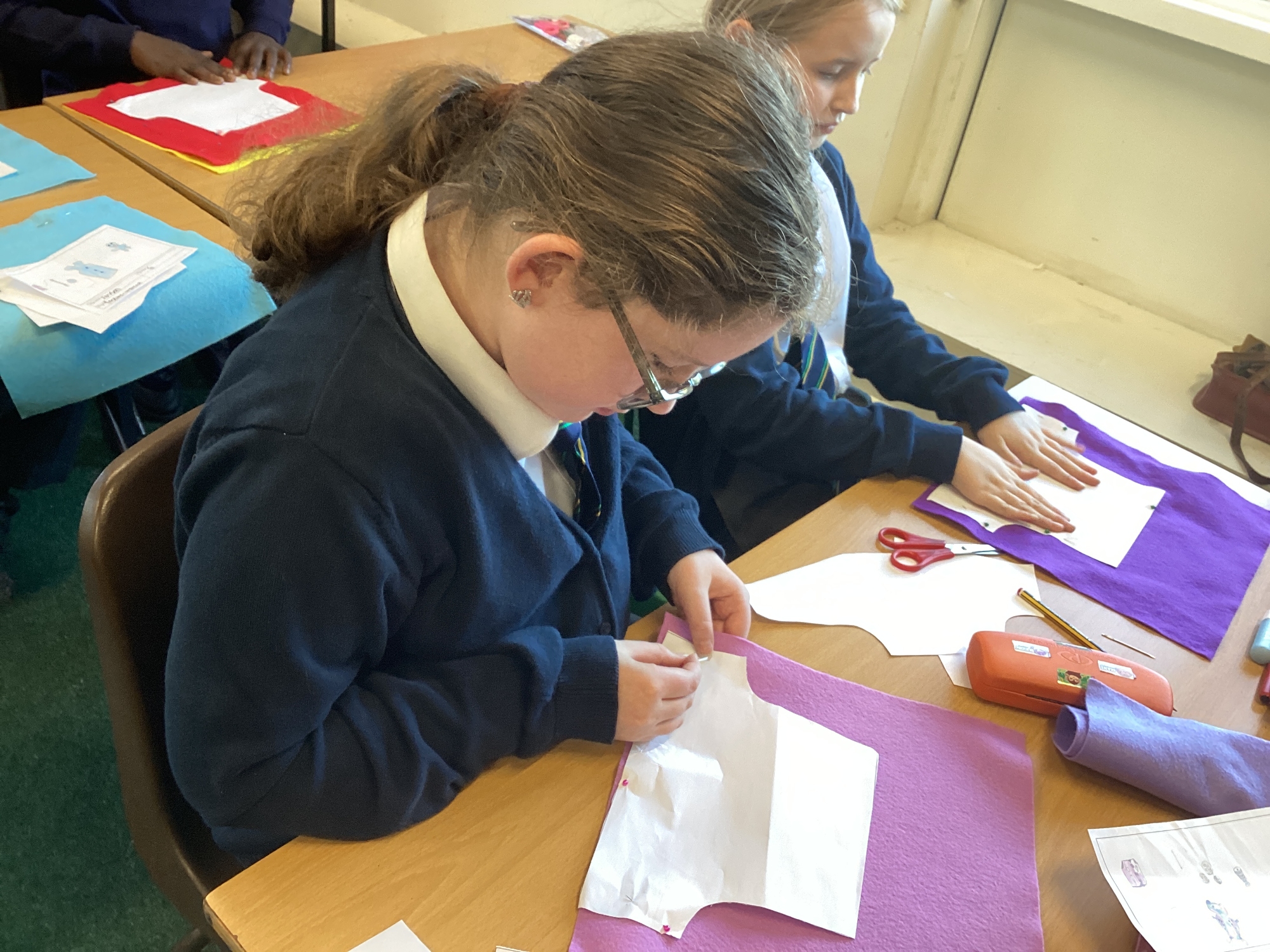In DT, we explored the properties of different materials and used a pattern to cut shapes accurately from felt.