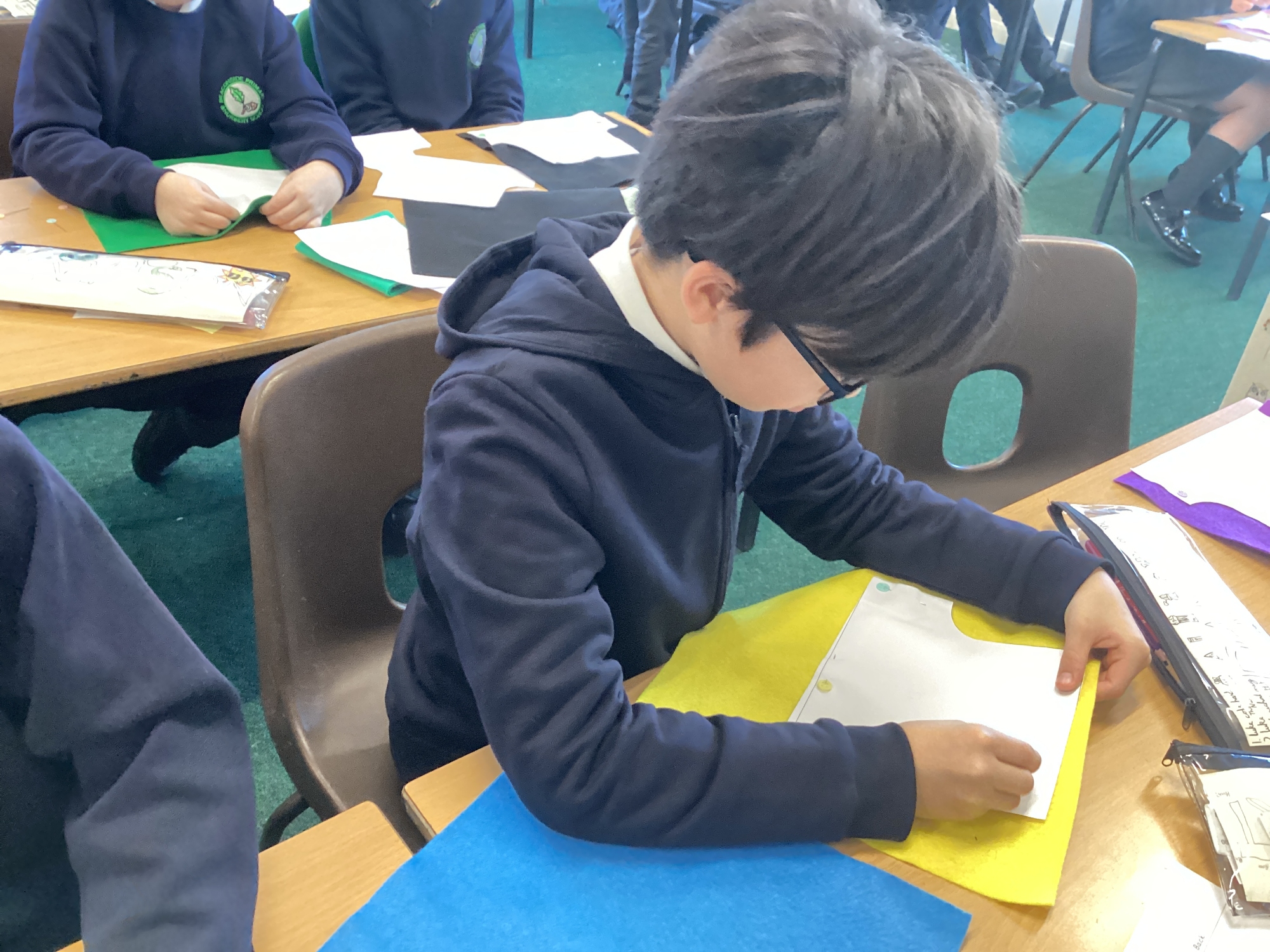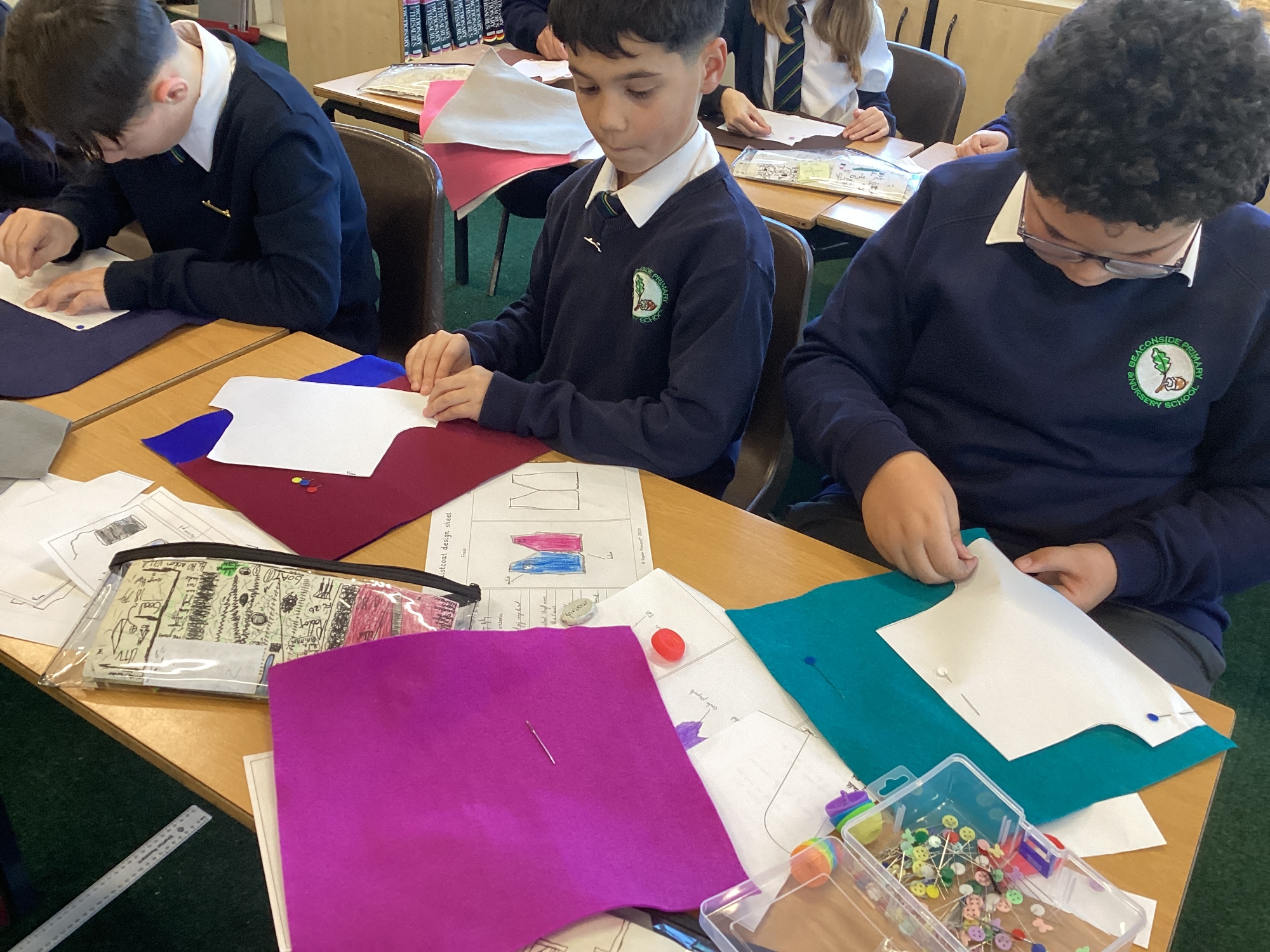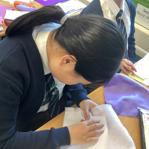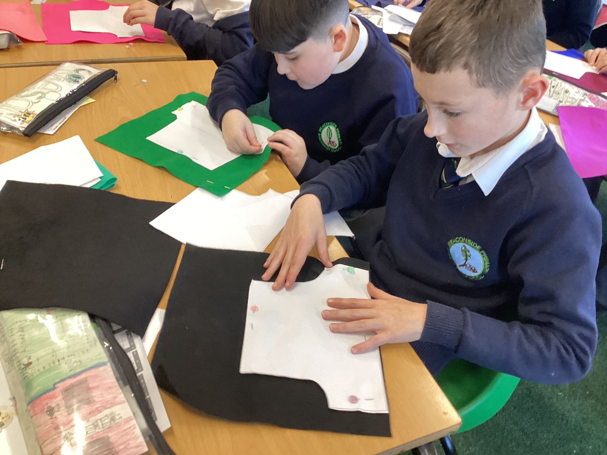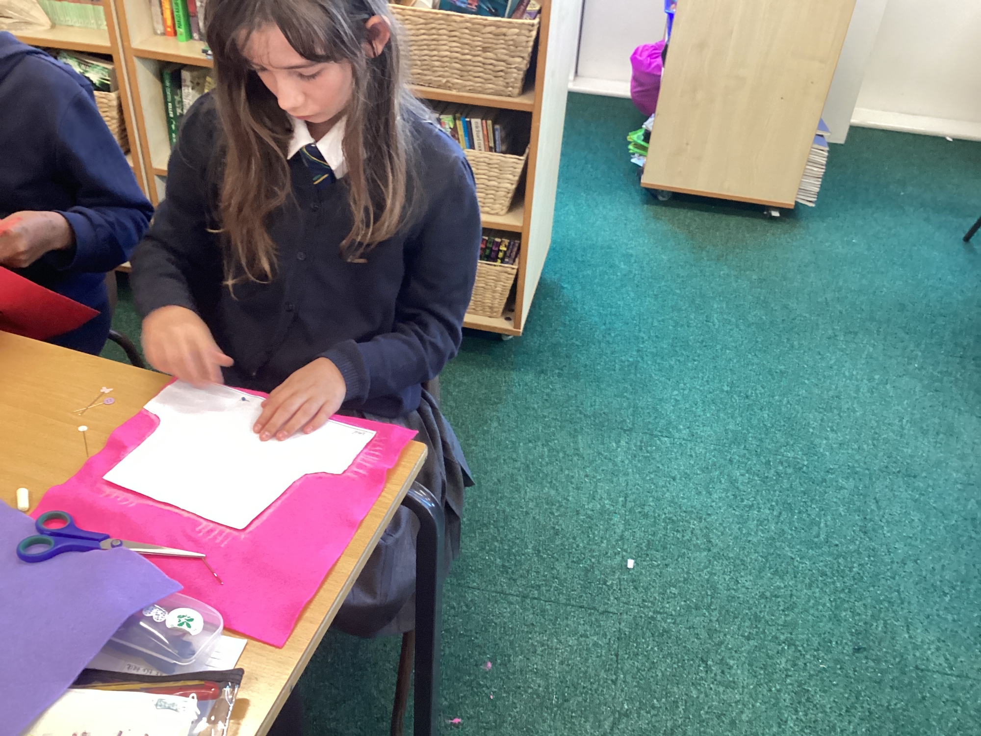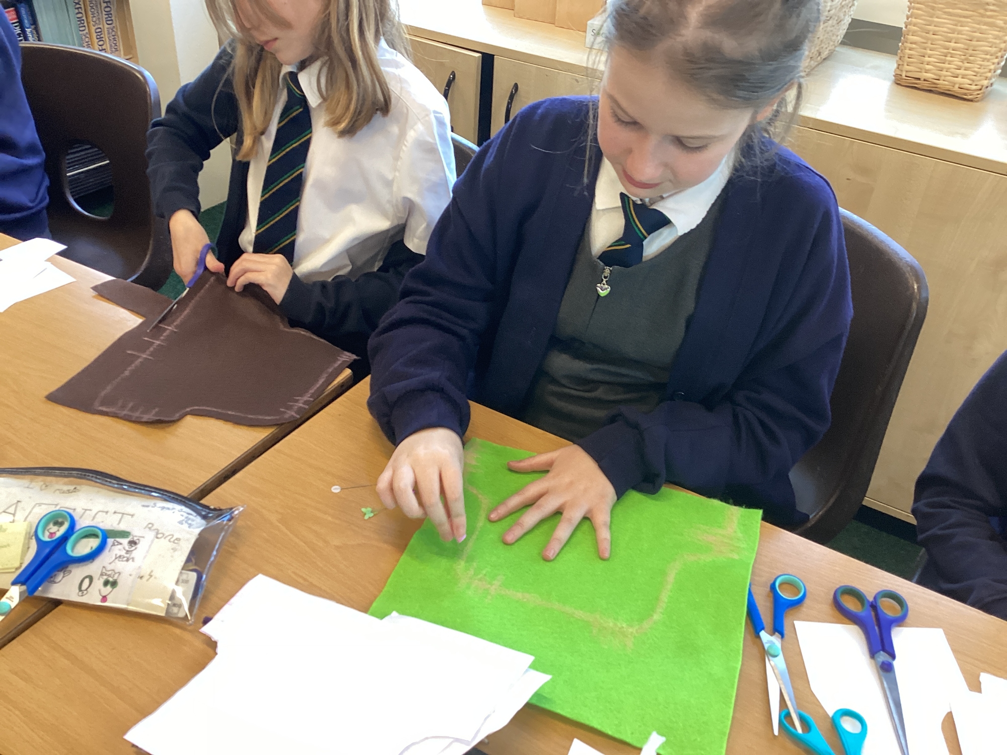 In DT, we explored the properties of different materials and used a pattern to cut shapes accurately from felt.