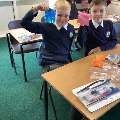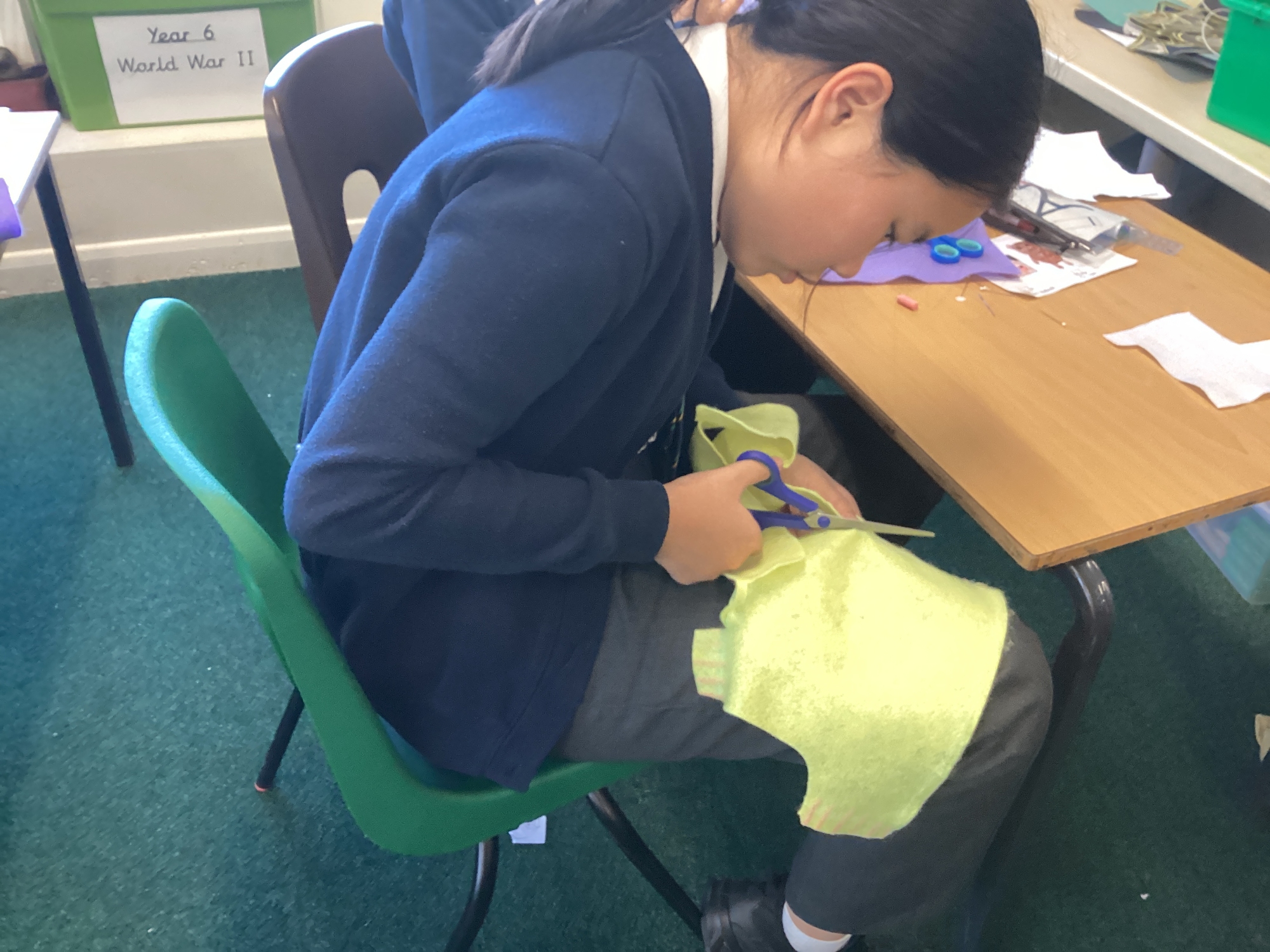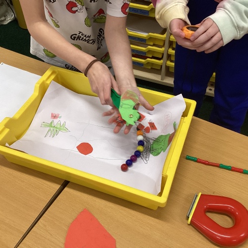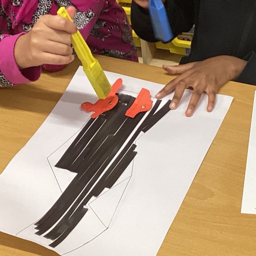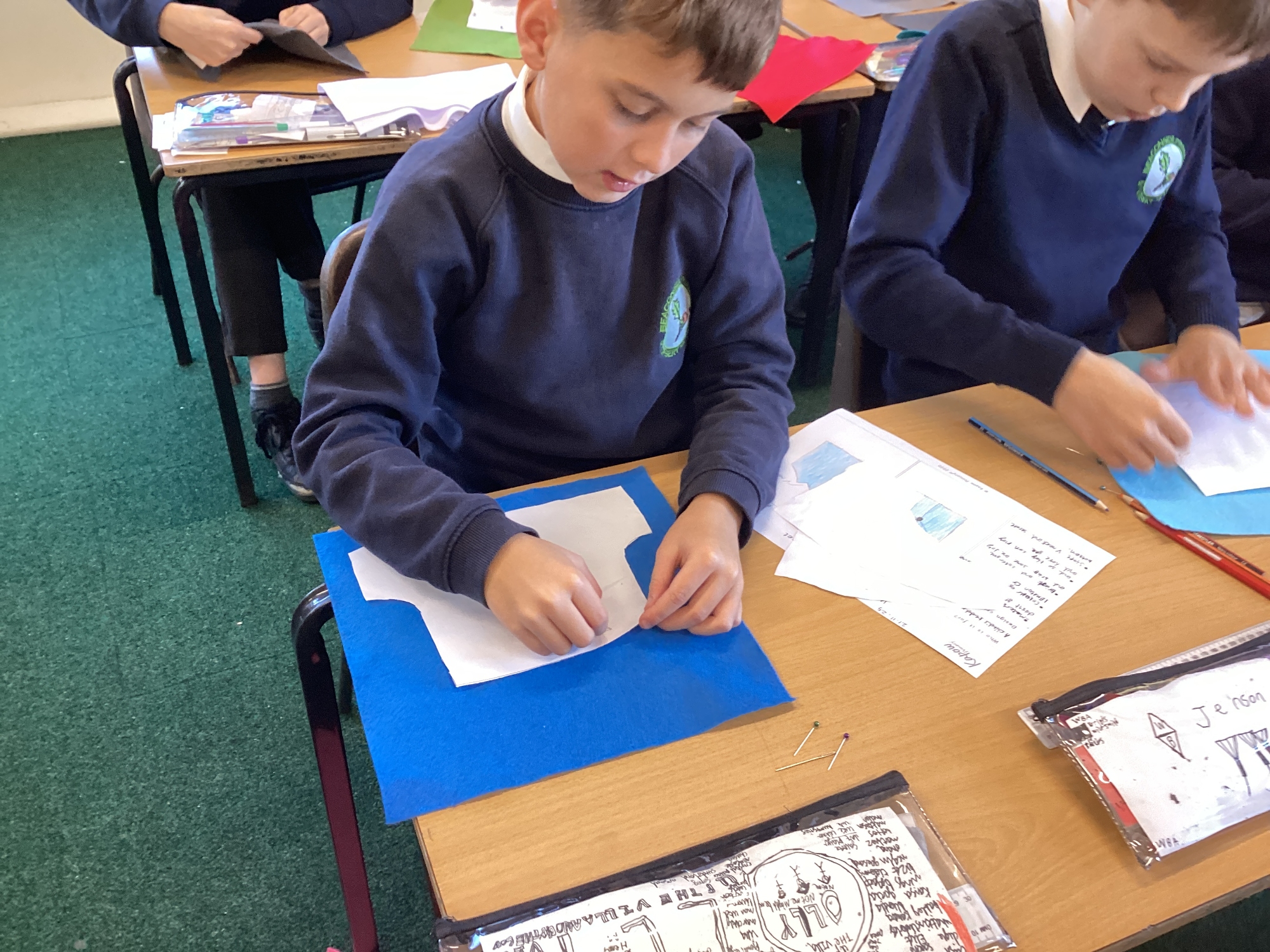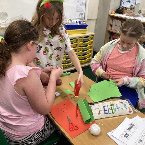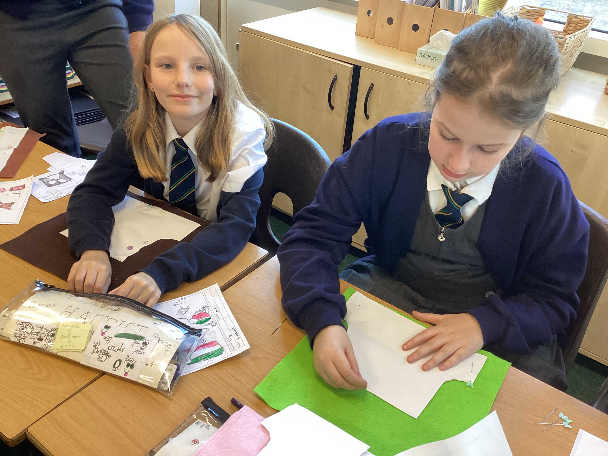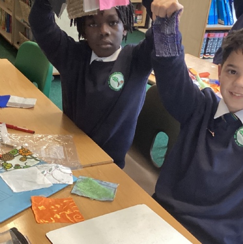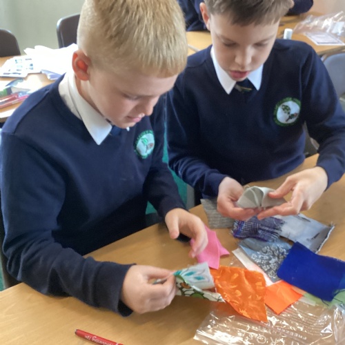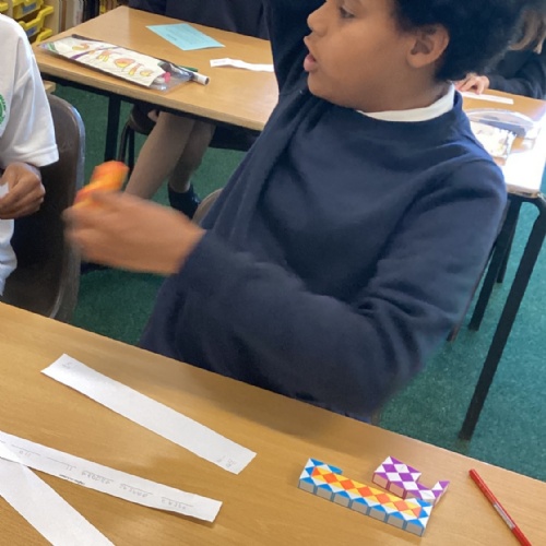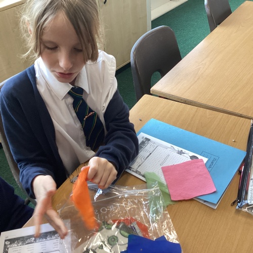 In DT, we explored the properties of different materials and used a pattern to cut shapes accurately from felt.