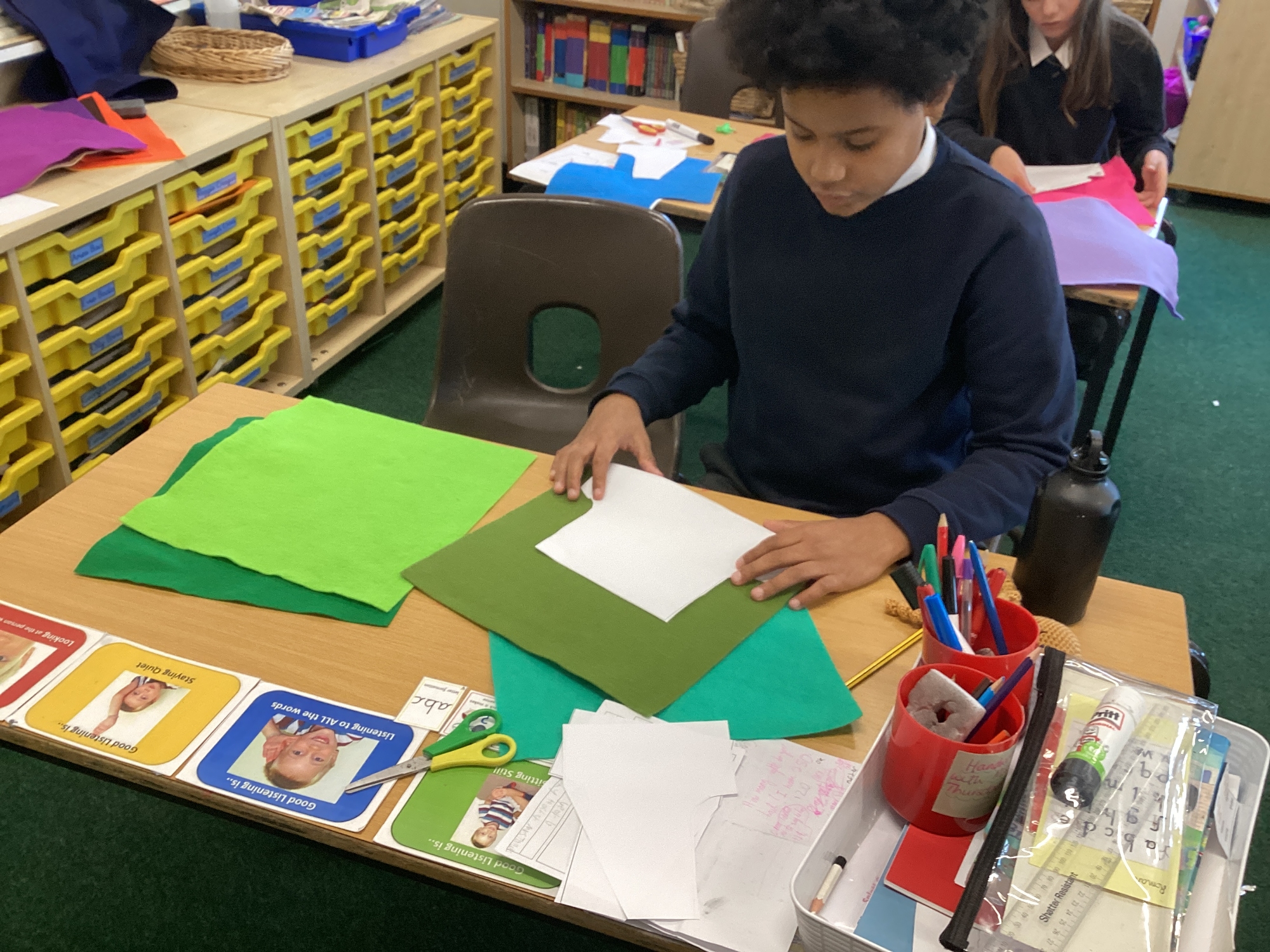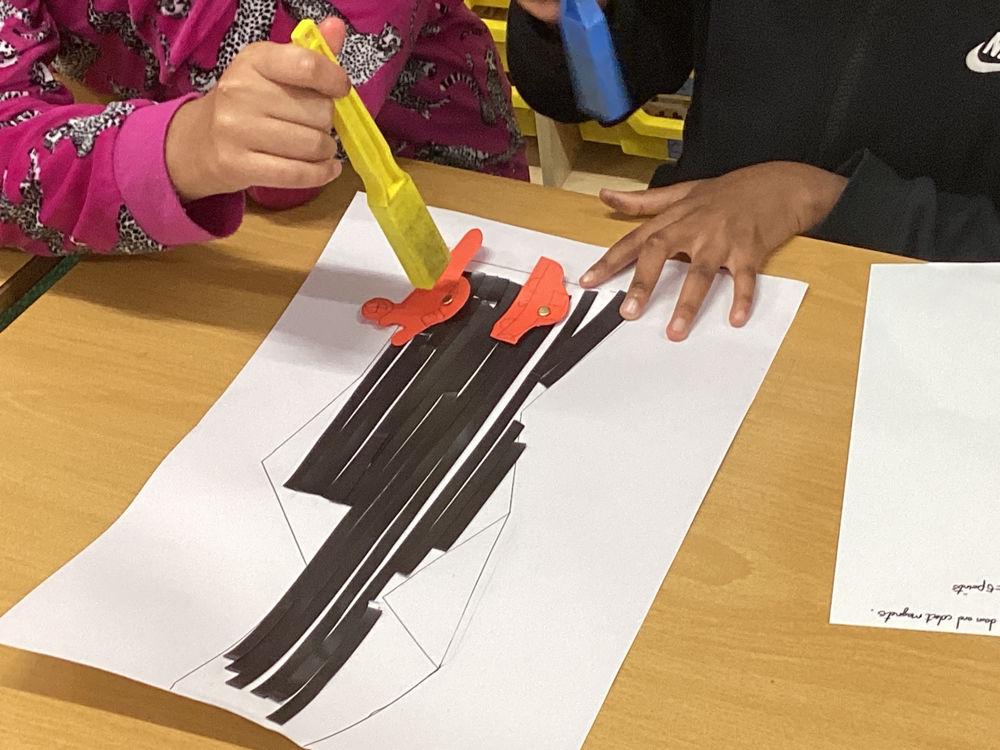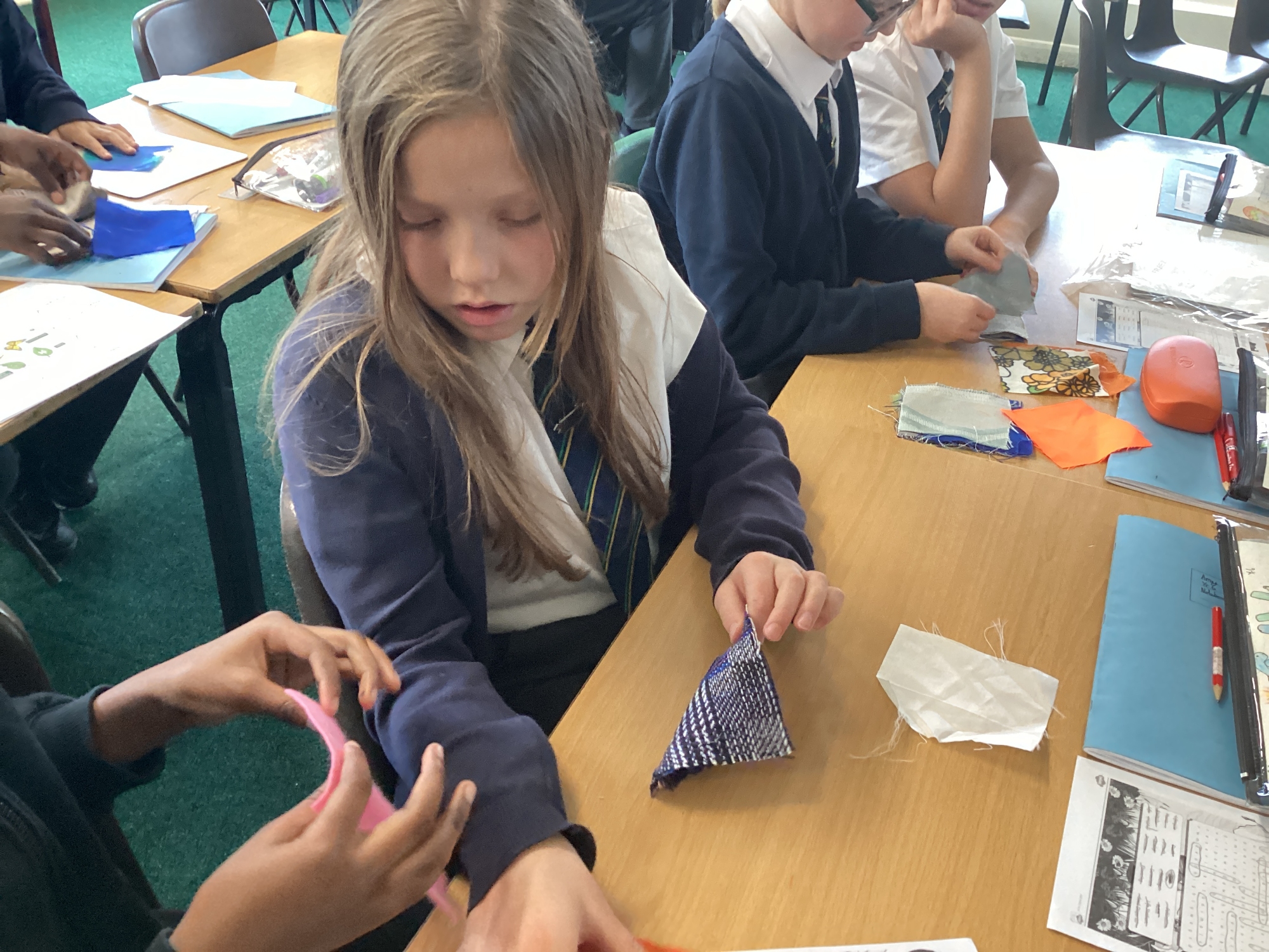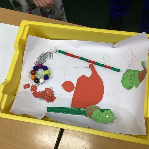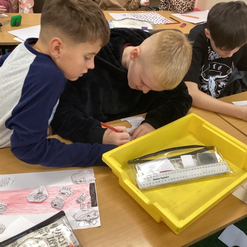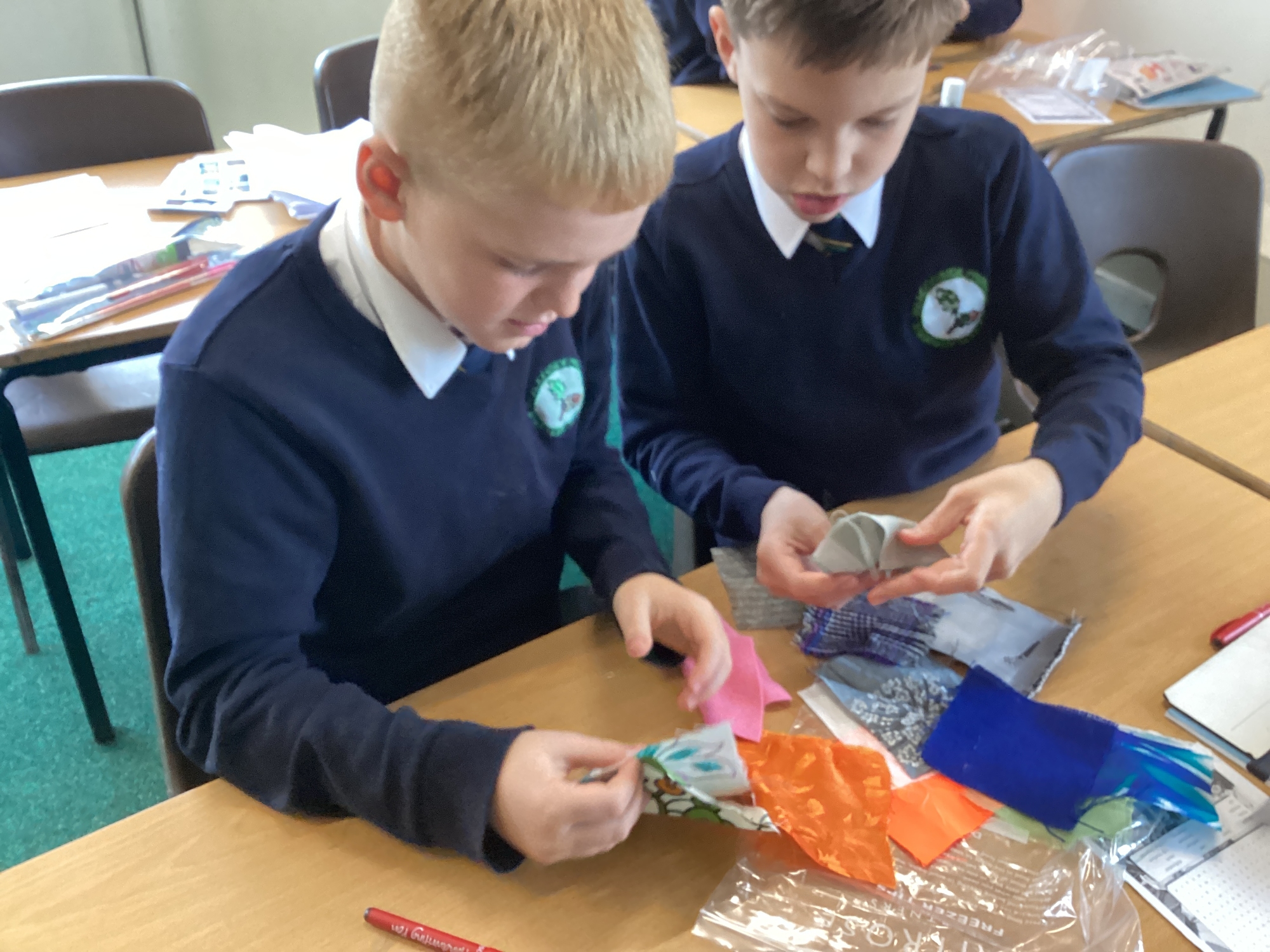 In DT, we explored the properties of different materials and used a pattern to cut shapes accurately from felt.
