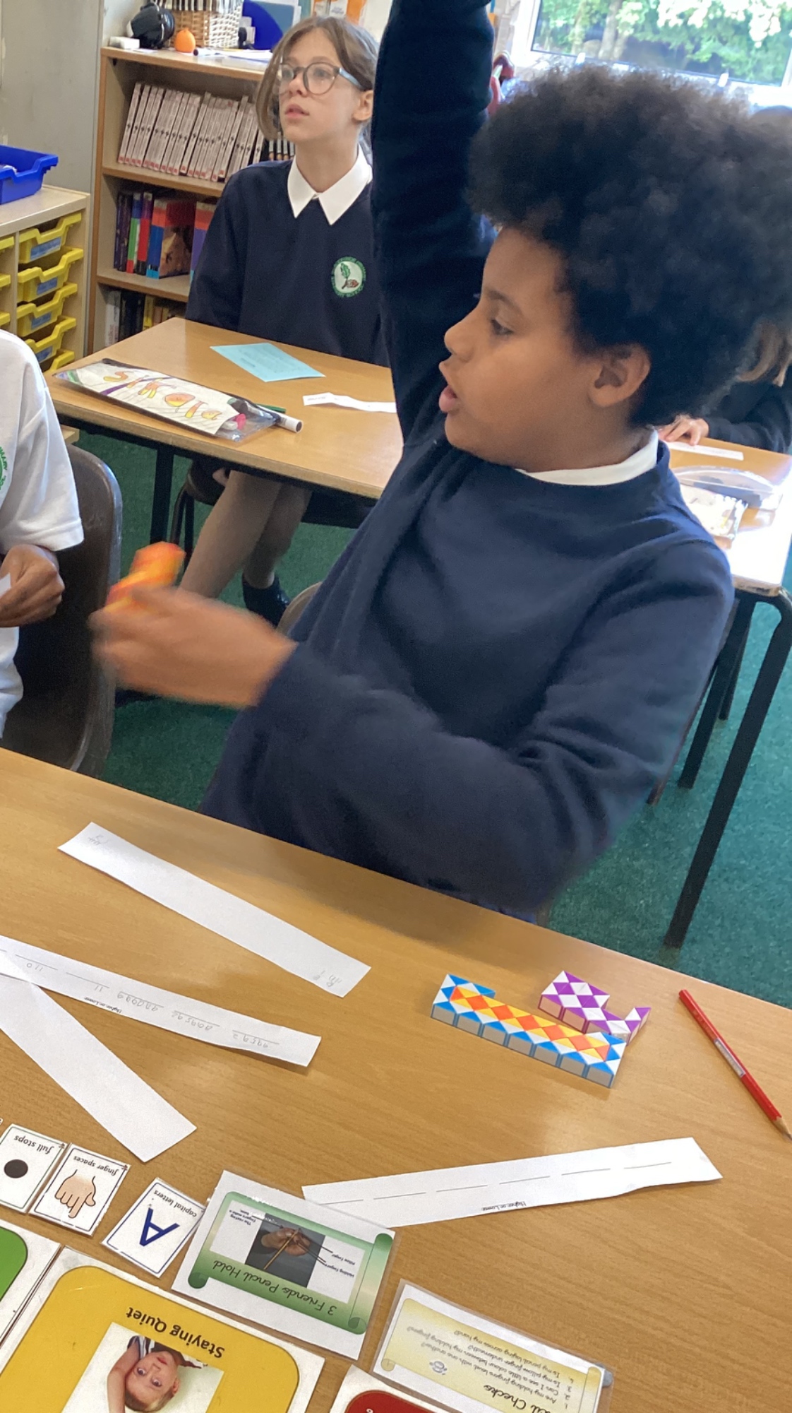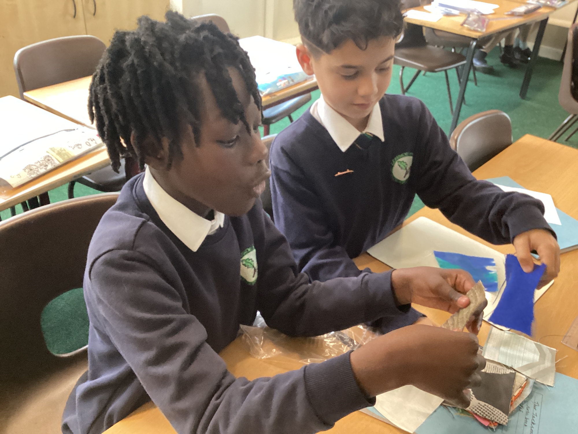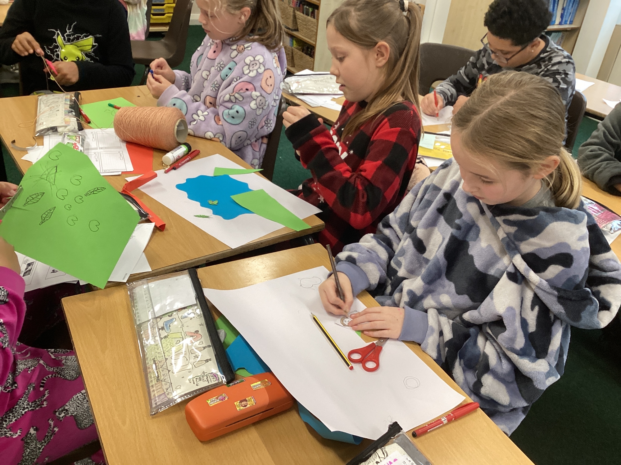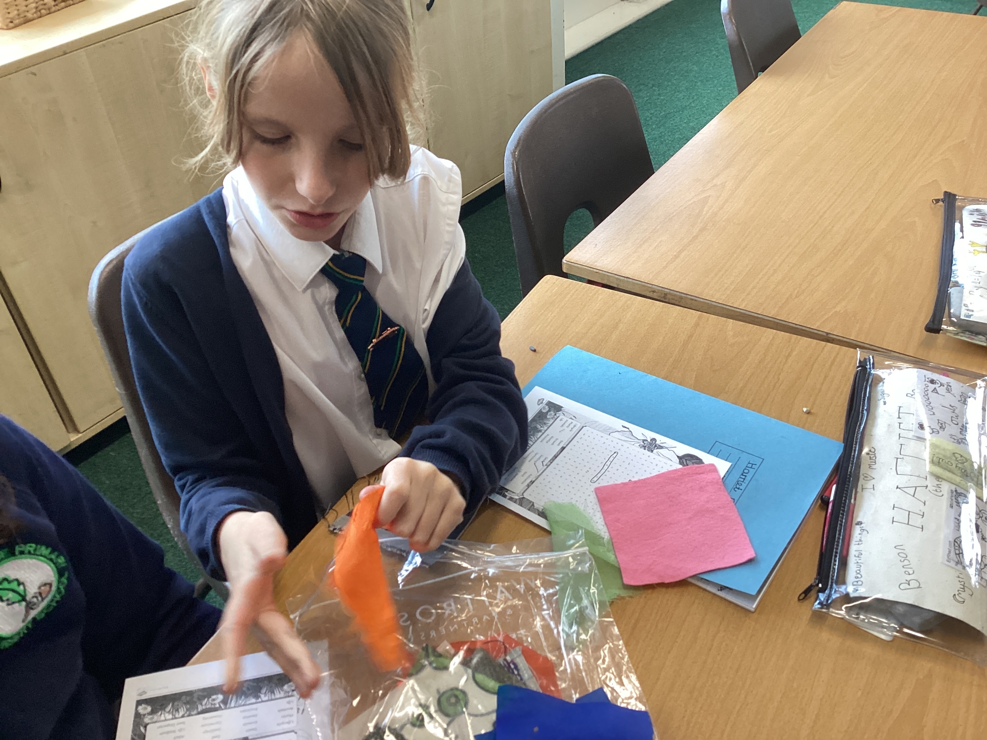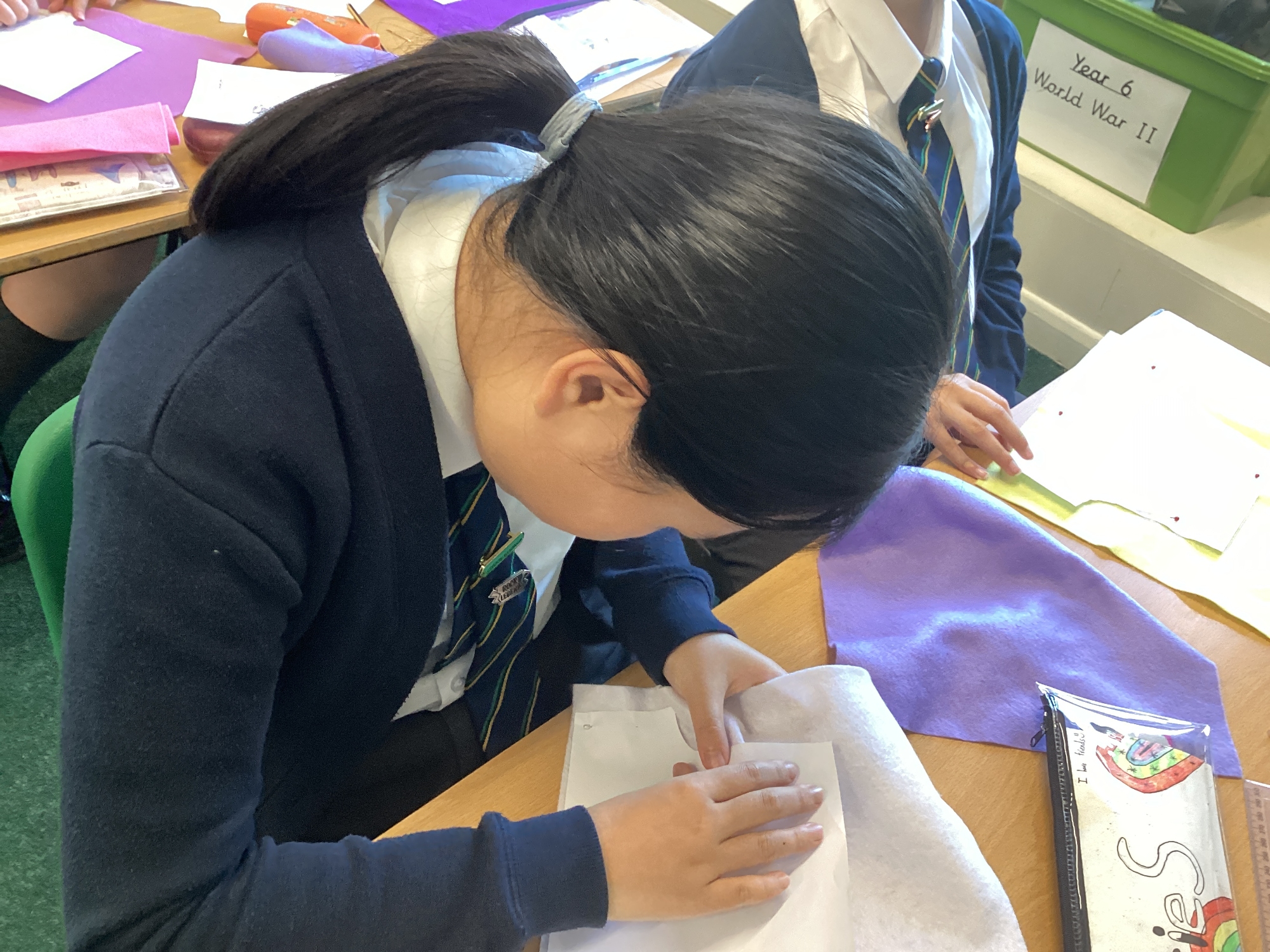 In DT, we explored the properties of different materials and used a pattern to cut shapes accurately from felt.