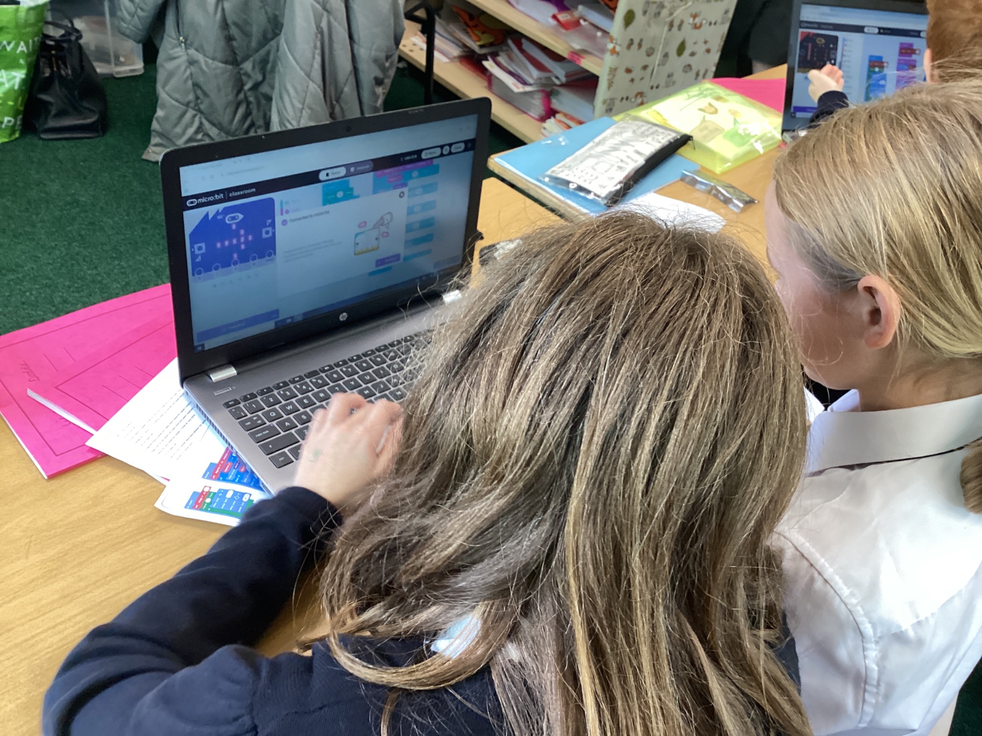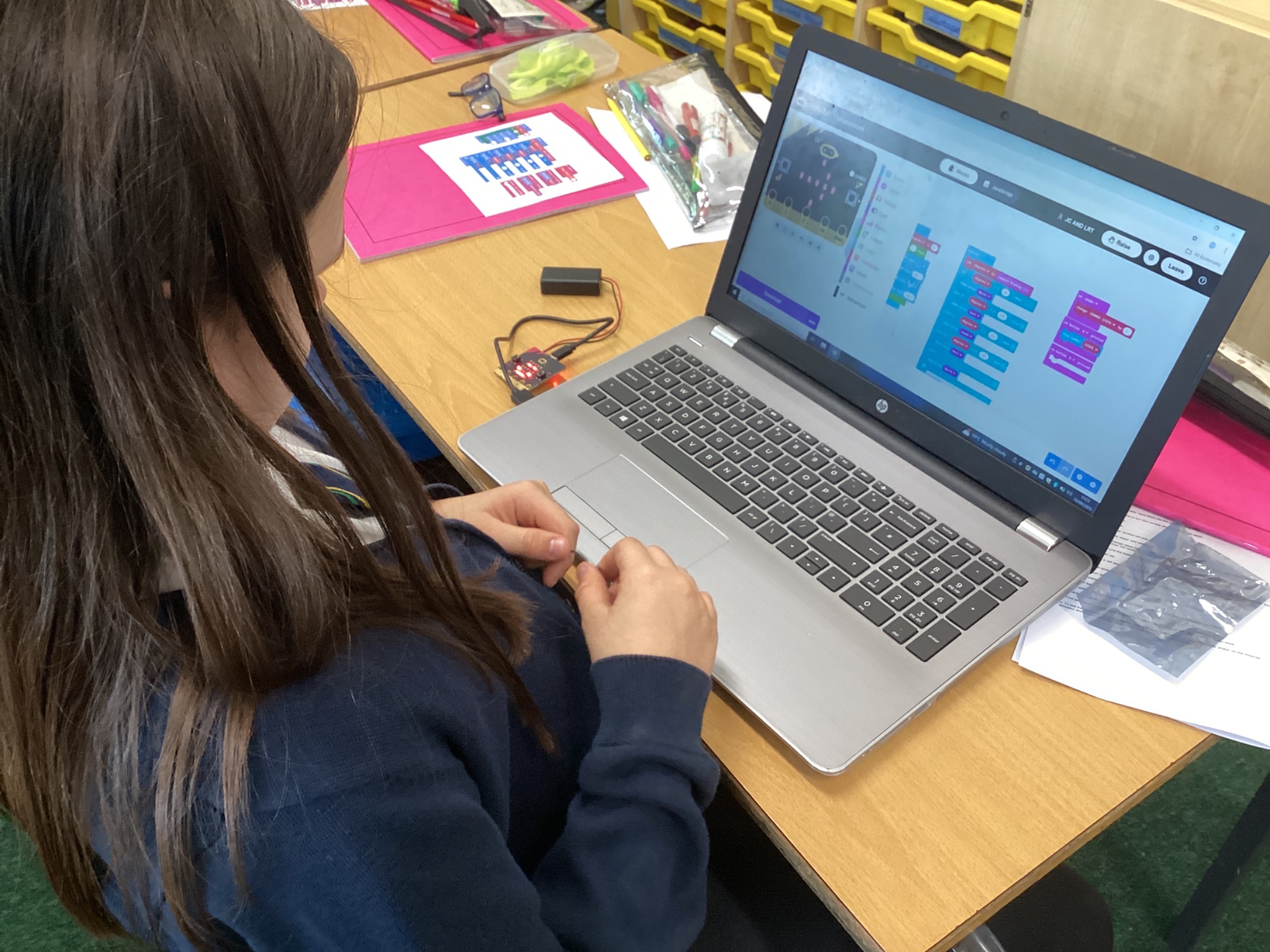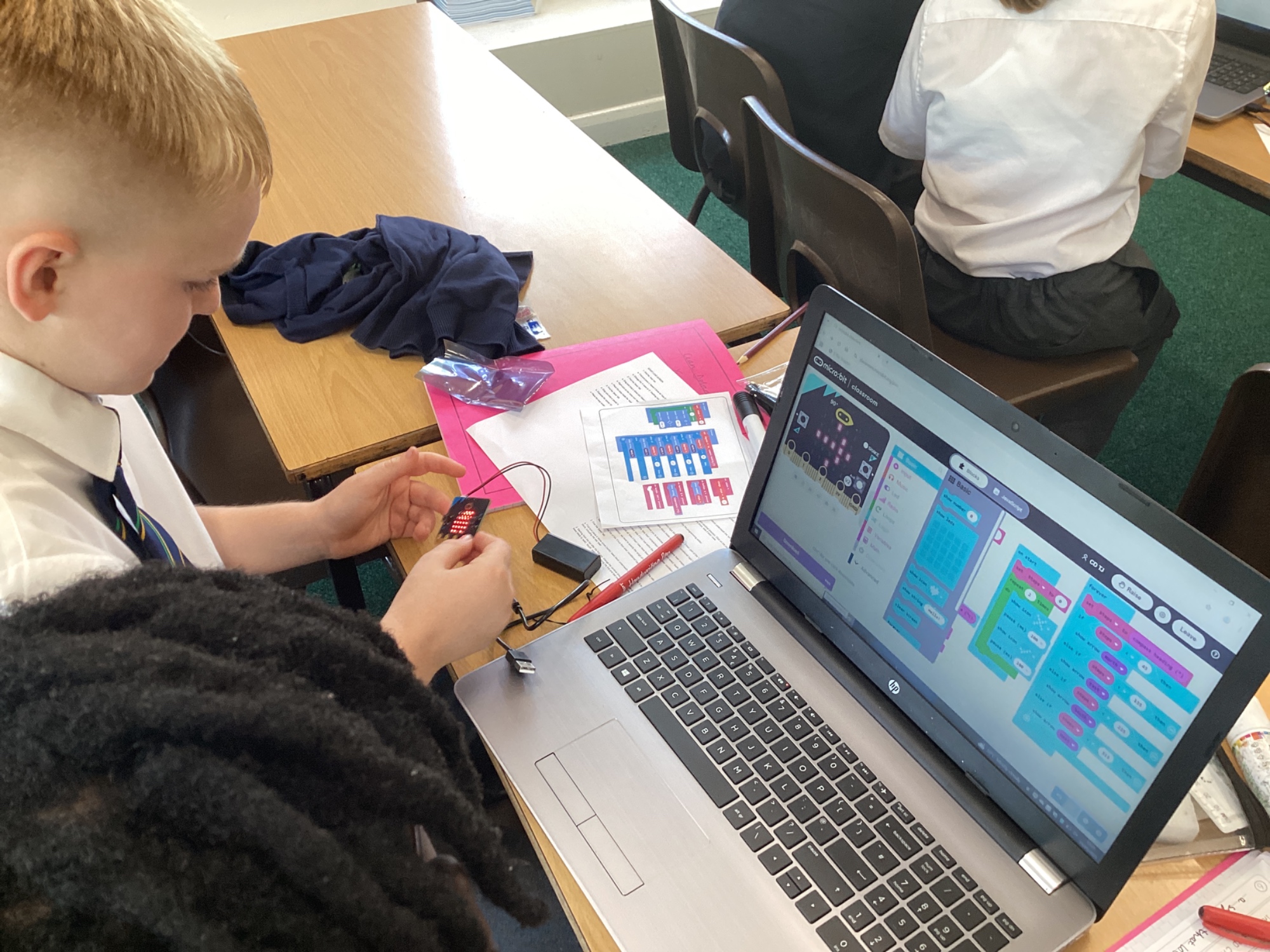 In DT, we built programs for a micro:bit to act as a compass and also as a pedometer in the on-line MakeCode editor. After building the code, we downloaded it to the physical micro:bit and tested out our programs.