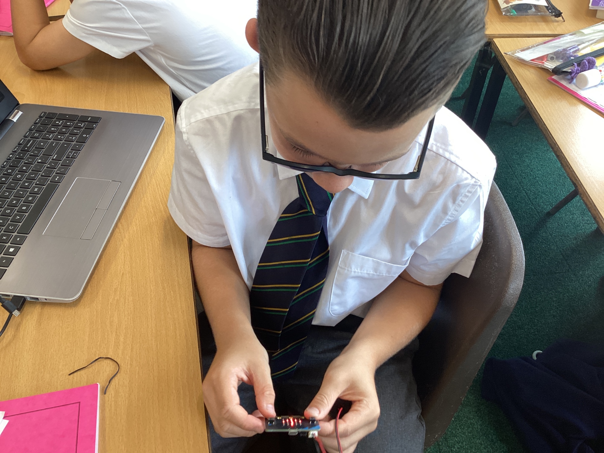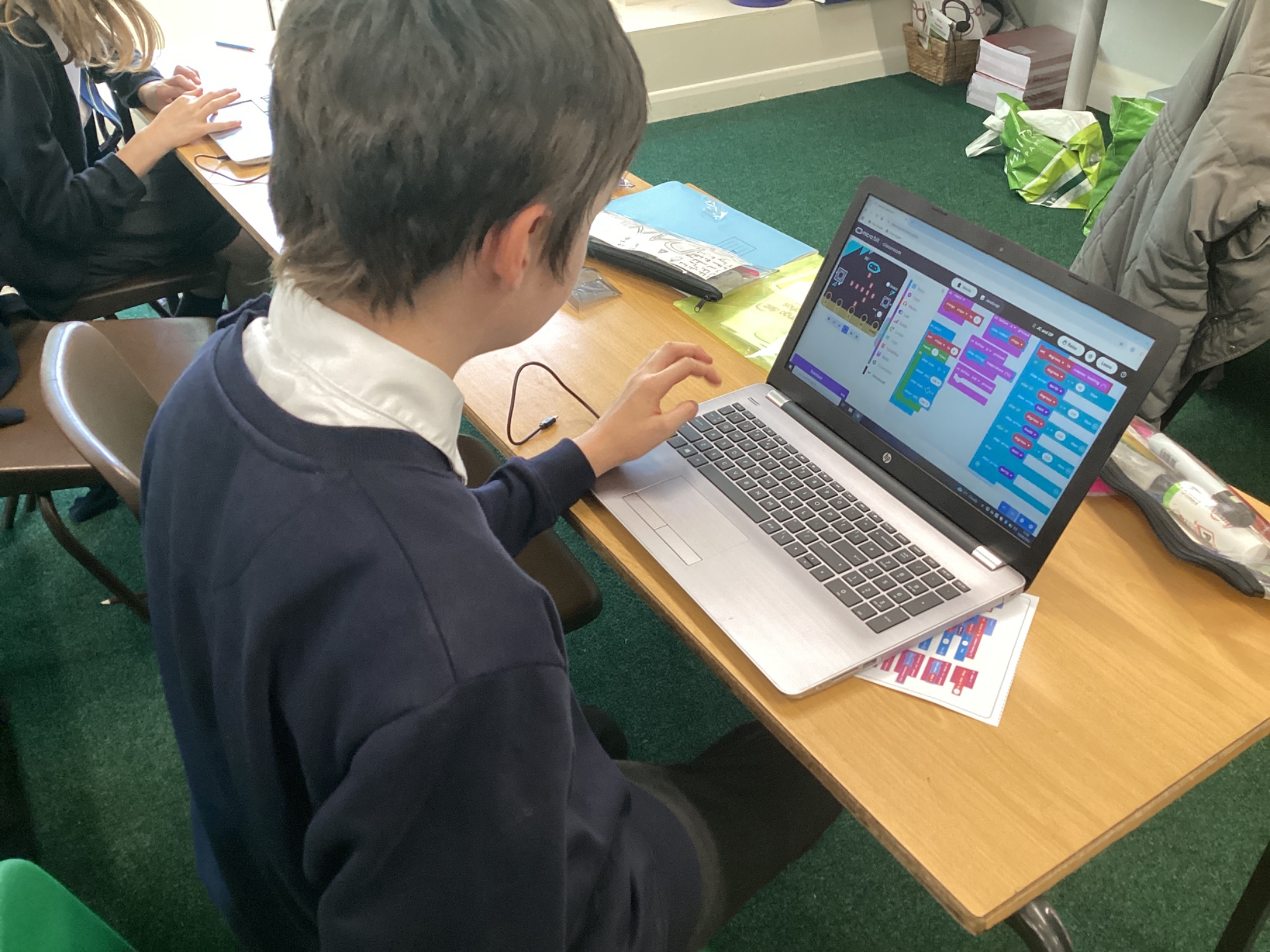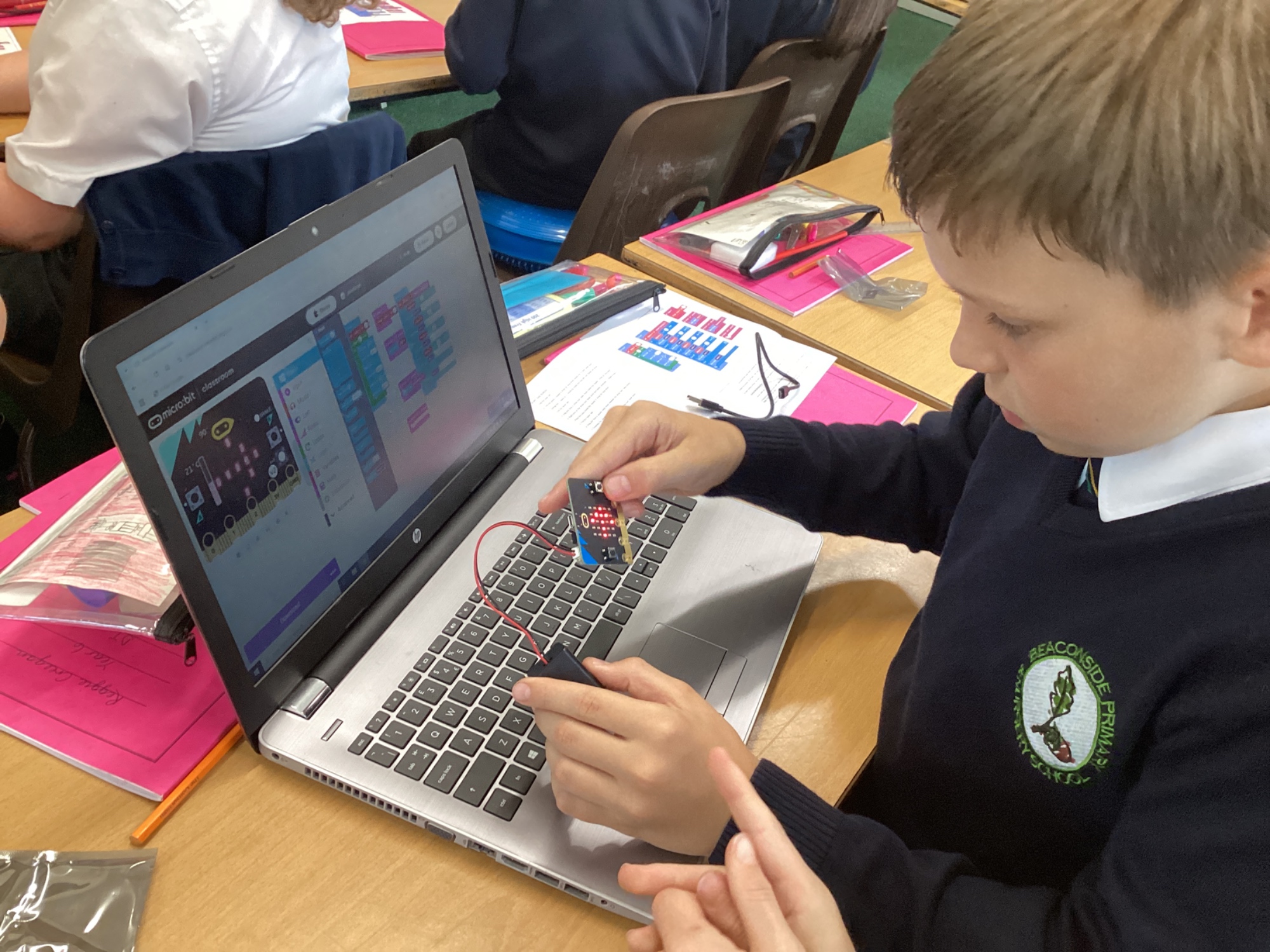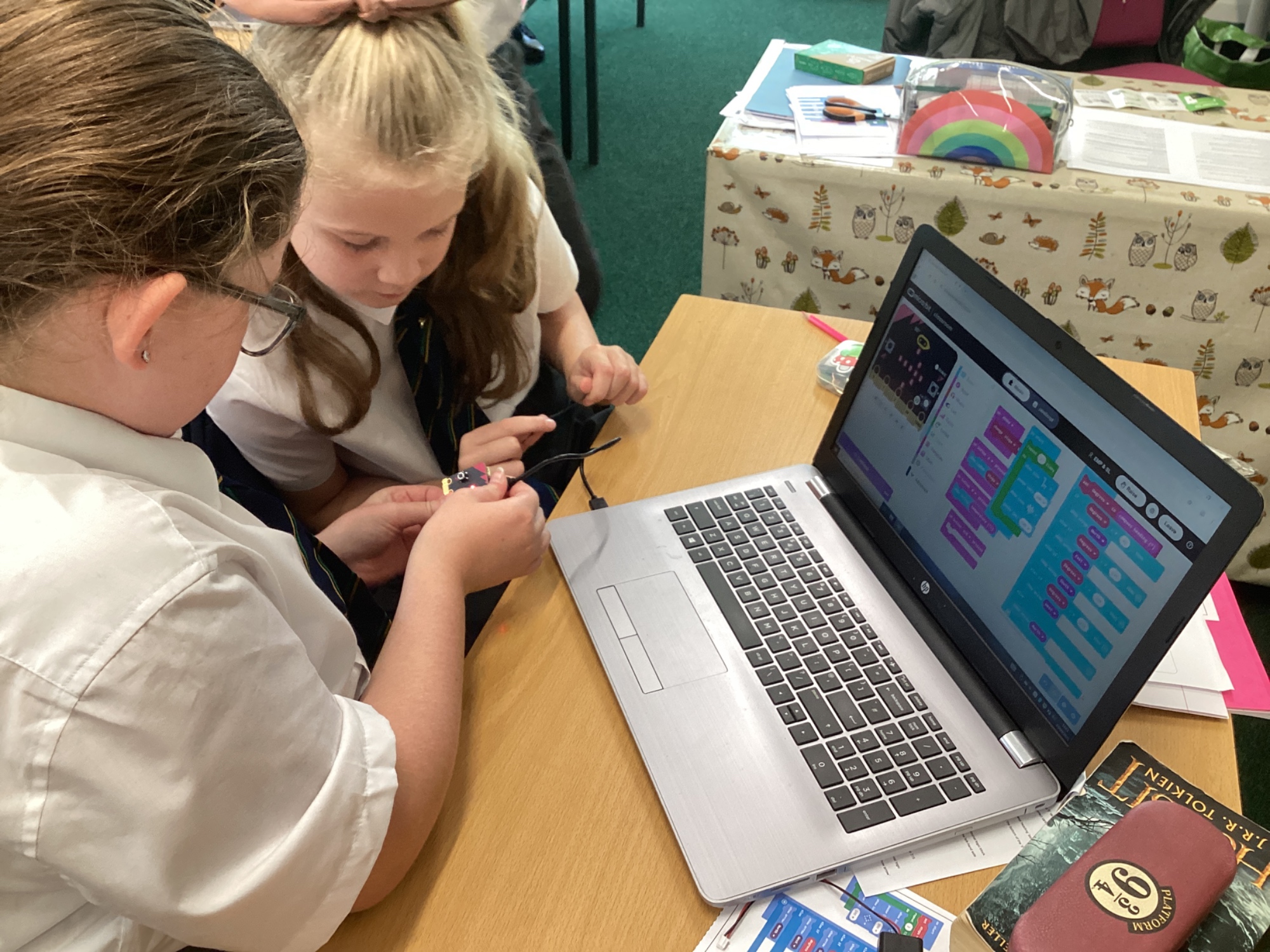 In DT, we built programs for a micro:bit to act as a compass and also as a pedometer in the on-line MakeCode editor. After building the code, we downloaded it to the physical micro:bit and tested out our programs.