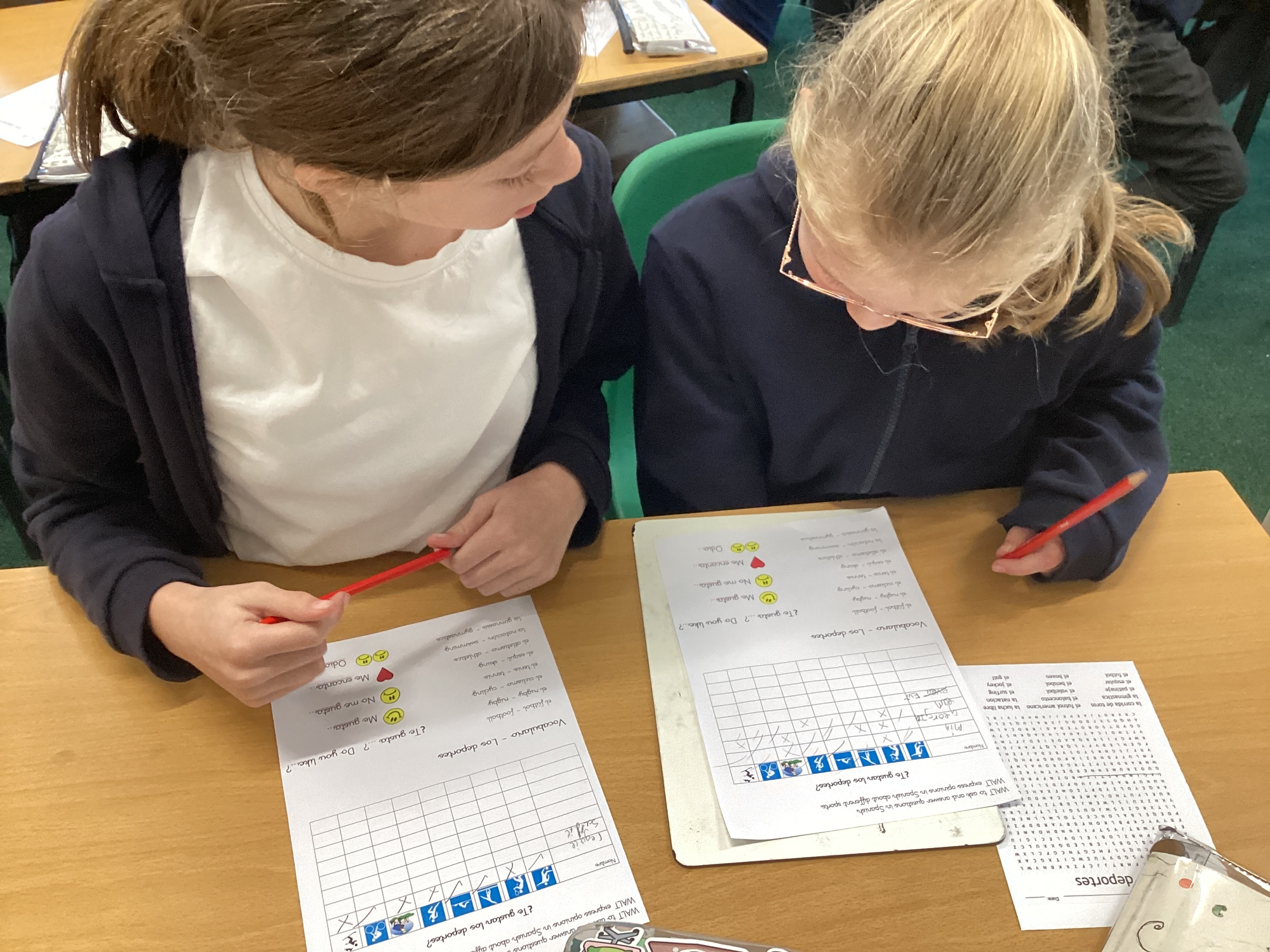 In Spanish, we completed a survey, asking and answering questions about our favourite sports.