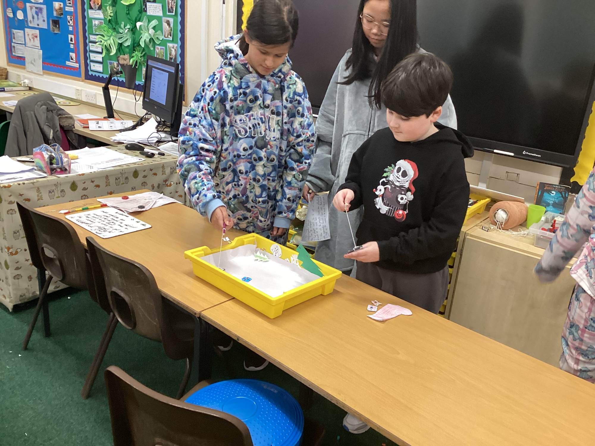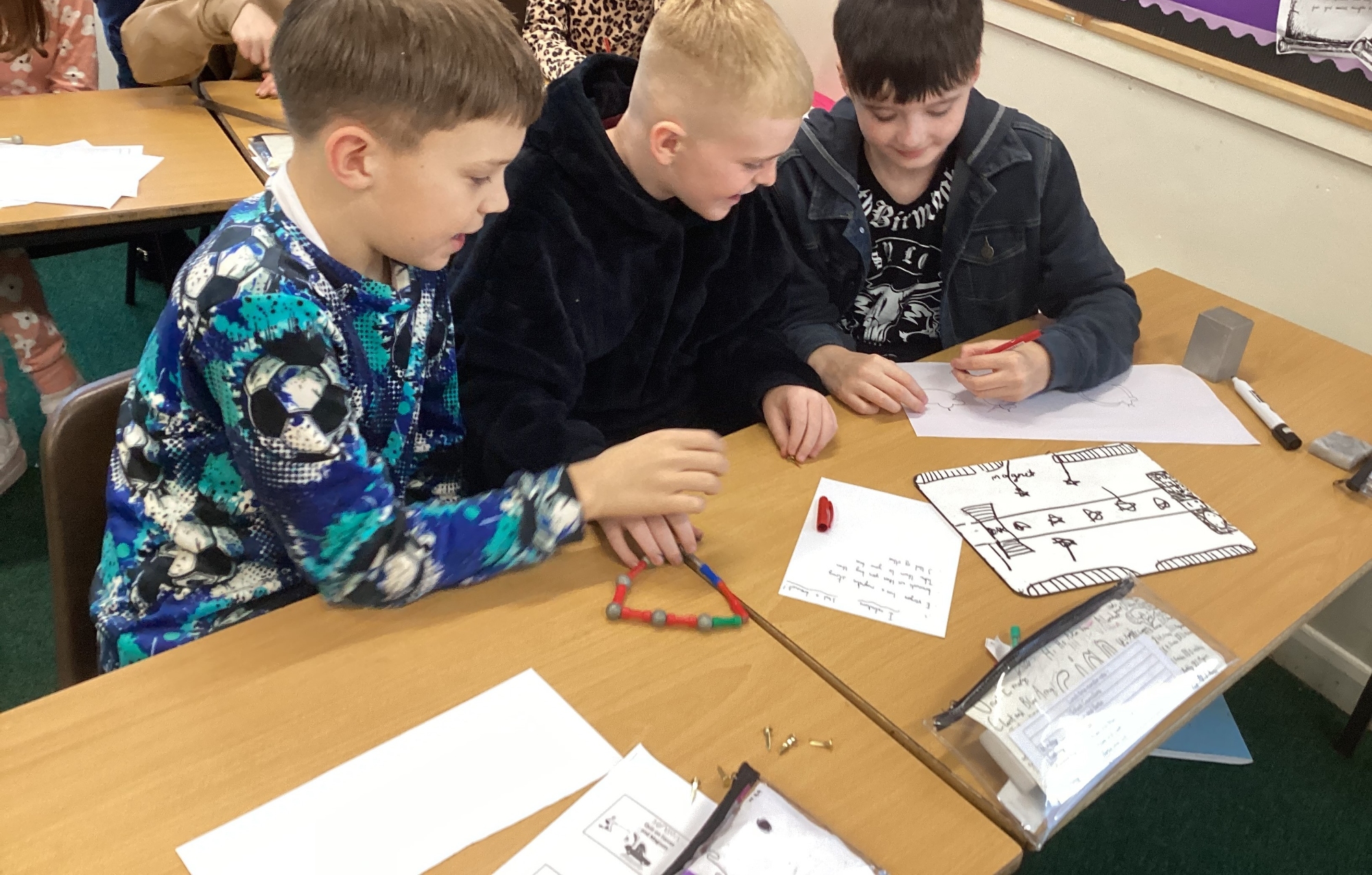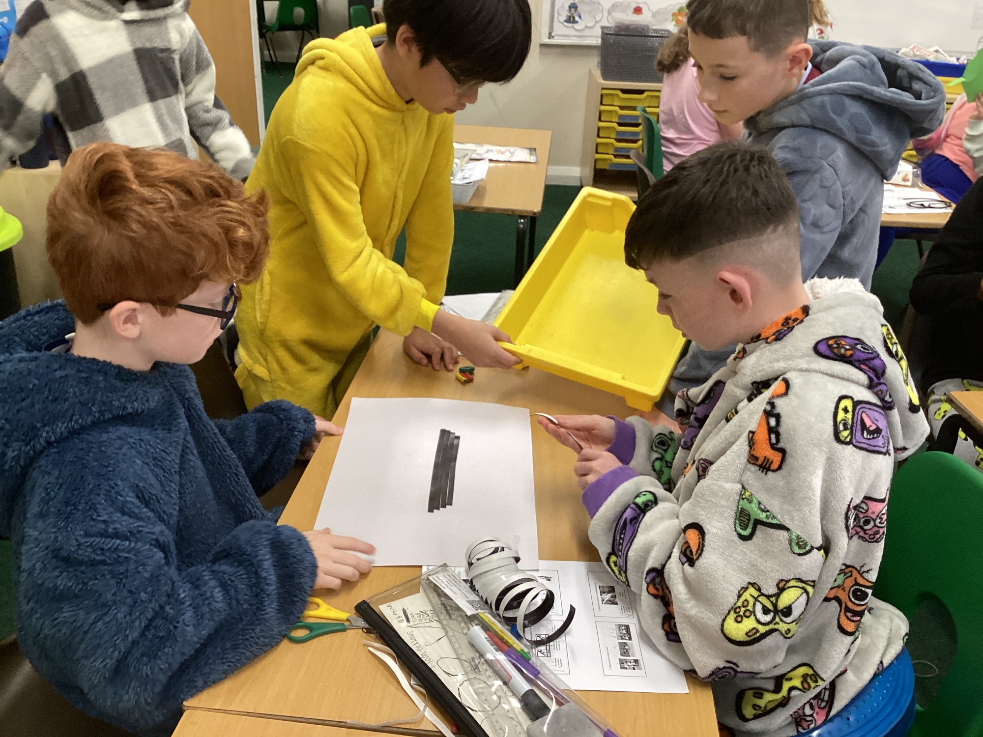 In science, we worked collaboratively to design and make board games using magnets.