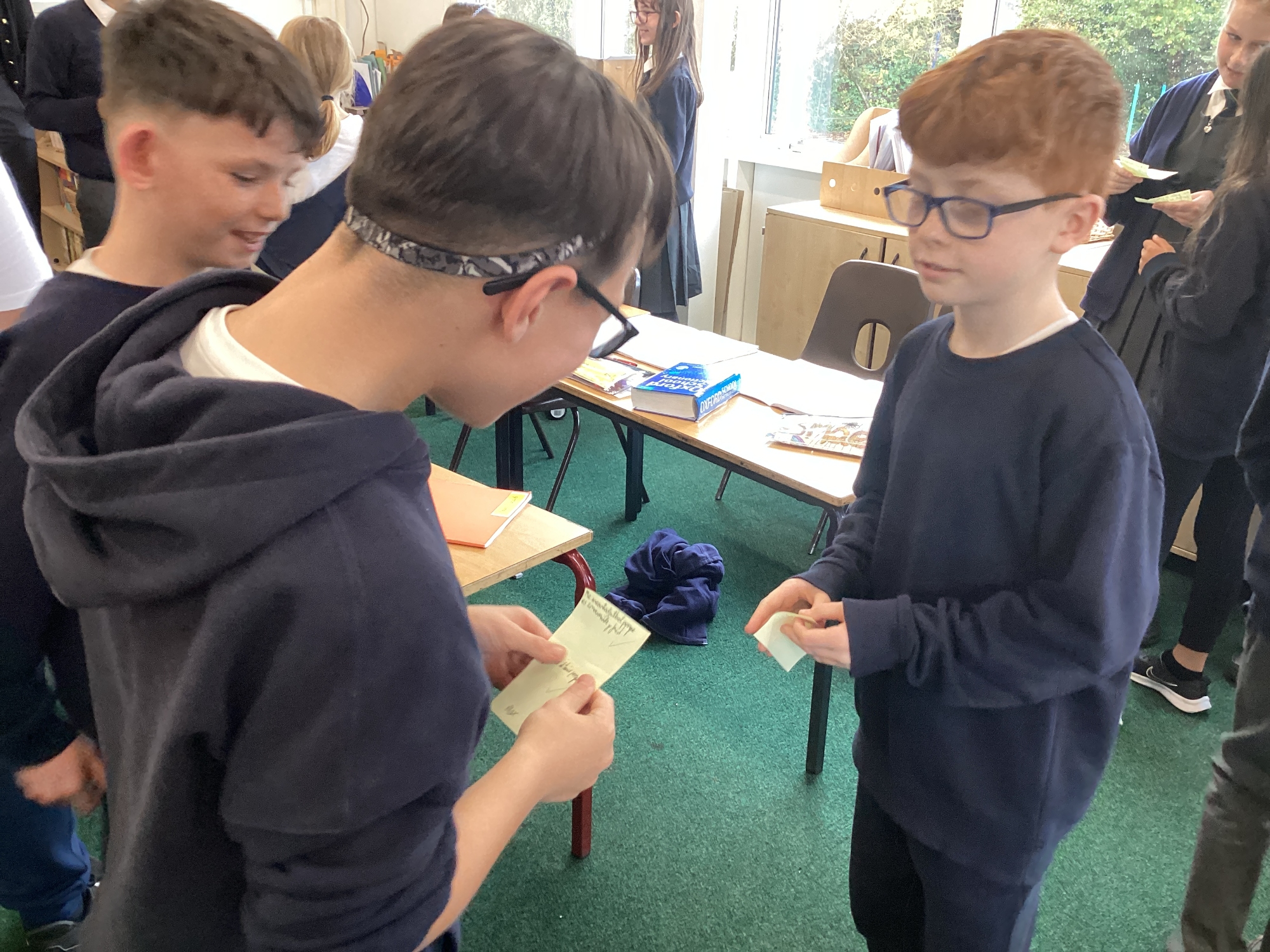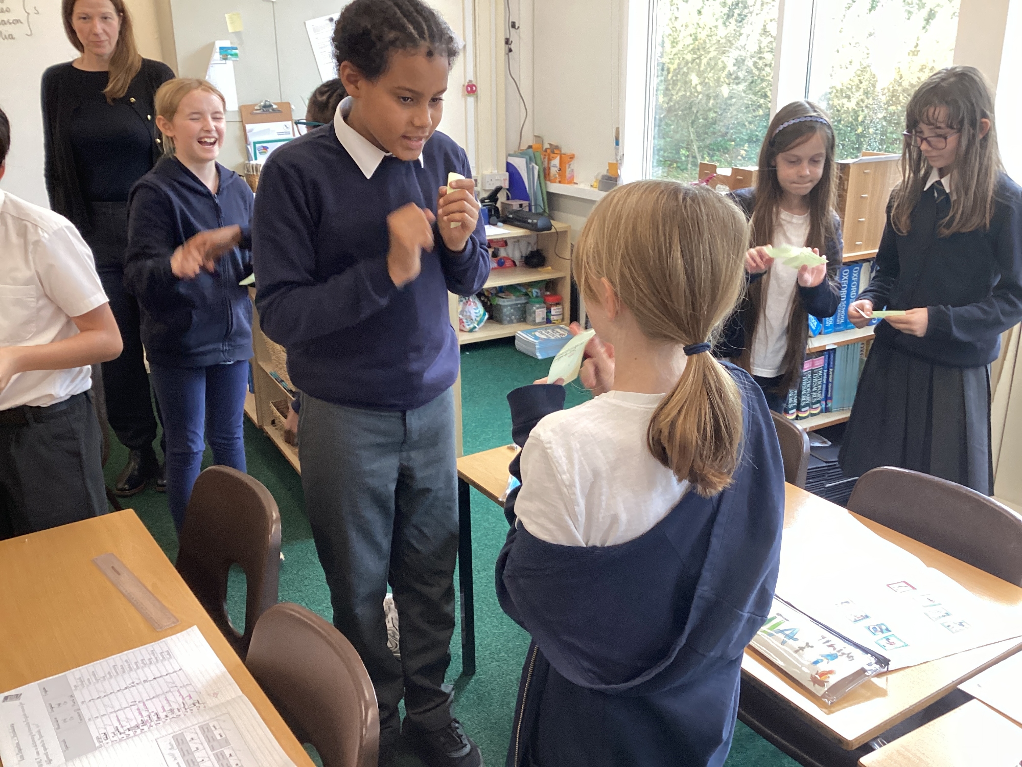 In Spanish, we played 'piedra, papel, tijeras' (rock, paper, scissors), to decide who read their Spanish sentences first.