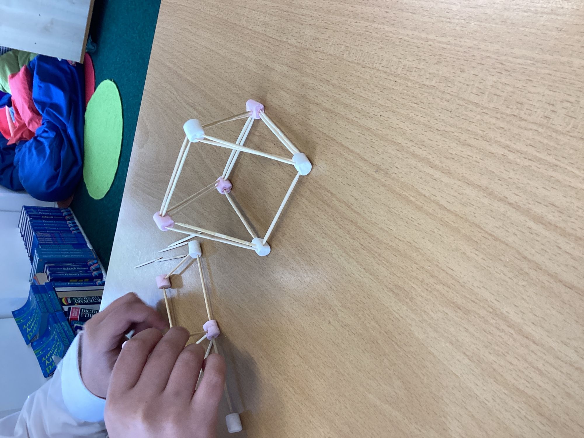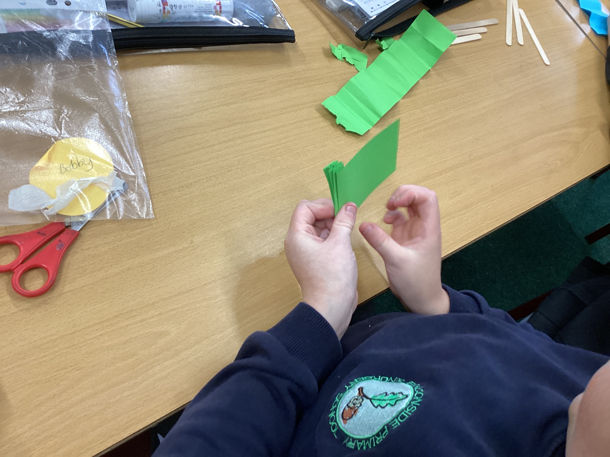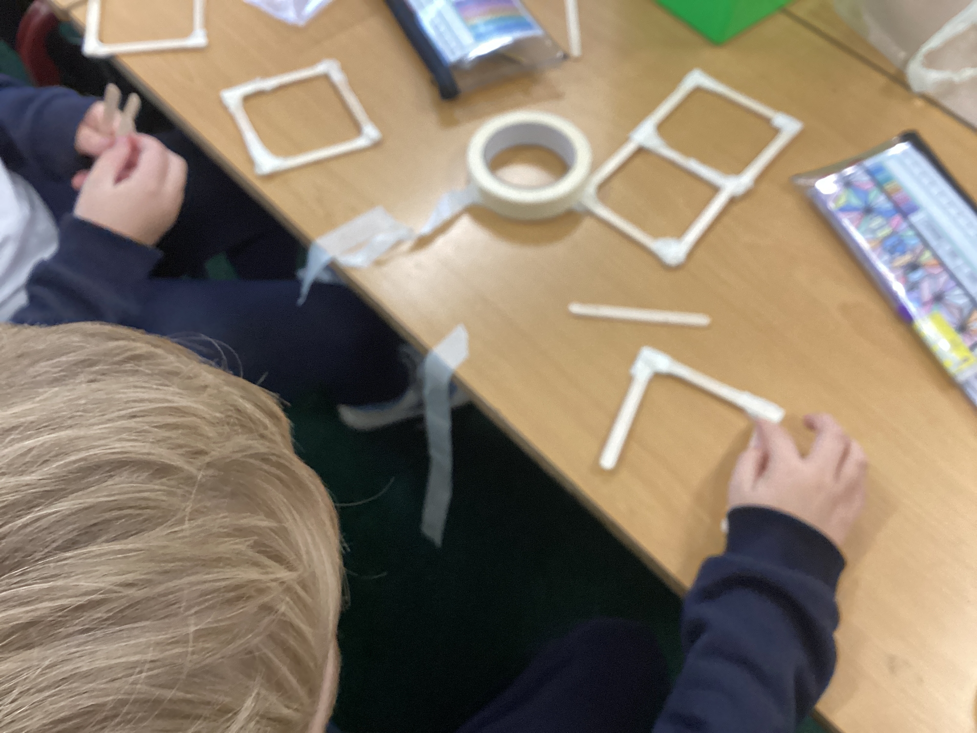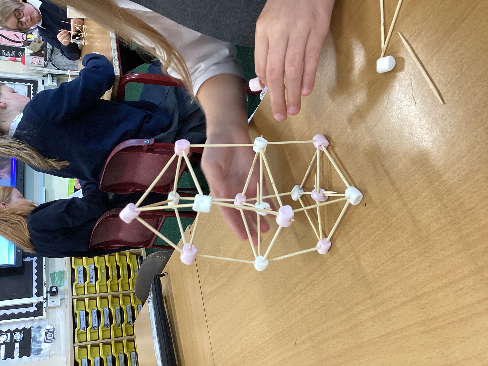 We have been learning how to make a frame structure using different materials. We began by testing out how structures fit together and how we could make them more stable by adding corner pieces. Next we thought about how we could use cladding to make our structures look aesthetically pleasing. We experimented with piercing, folding and weaving to create different patterns and textures.